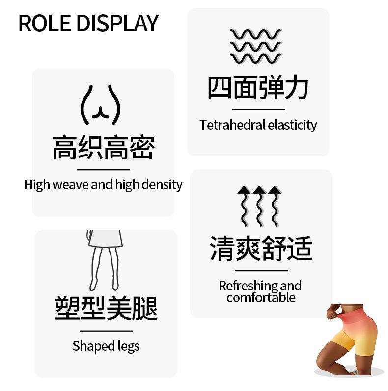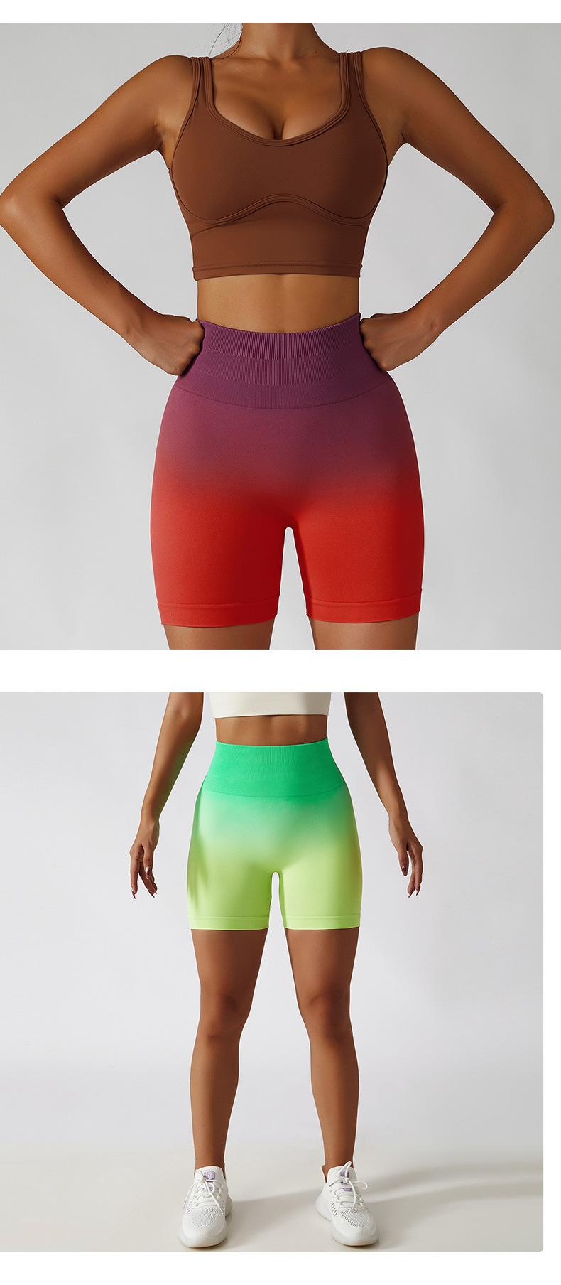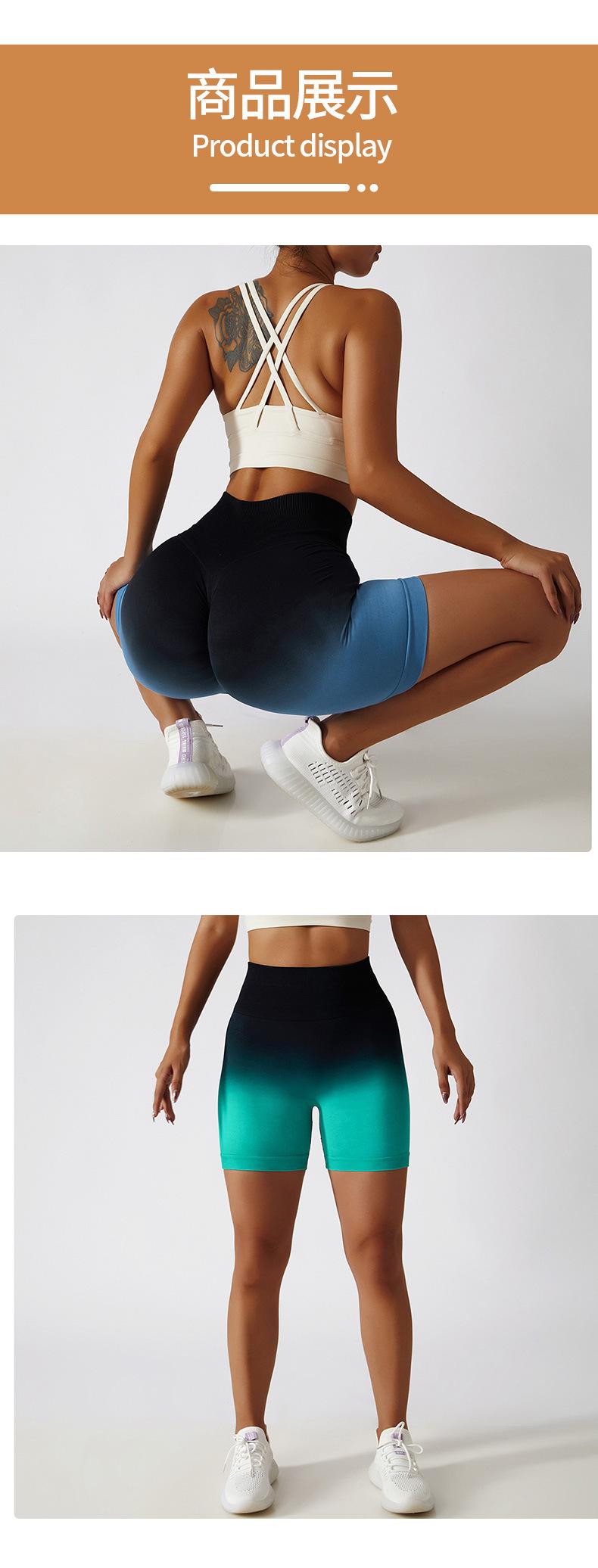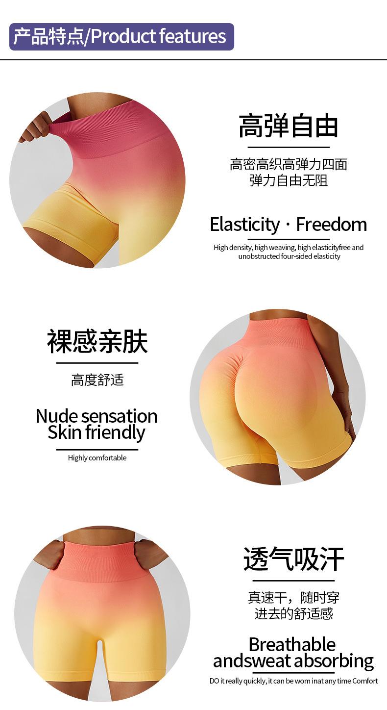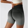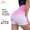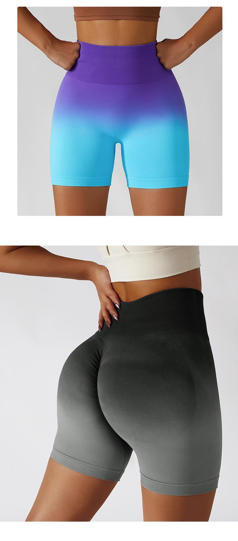 Pantalones deportivos de fitness para mujer, ajustados, sin costuras, para yoga, con efecto teñido colgante, para correr, con cinco puntos degradados en color melocotón.