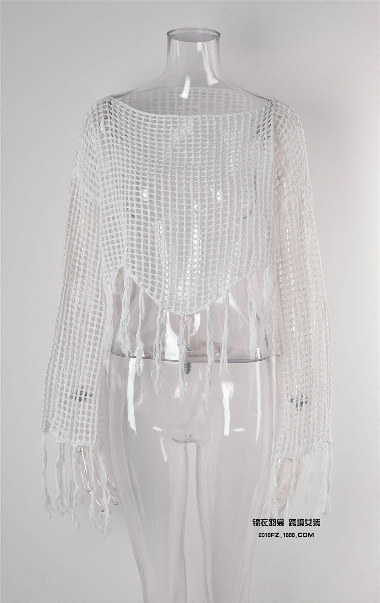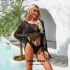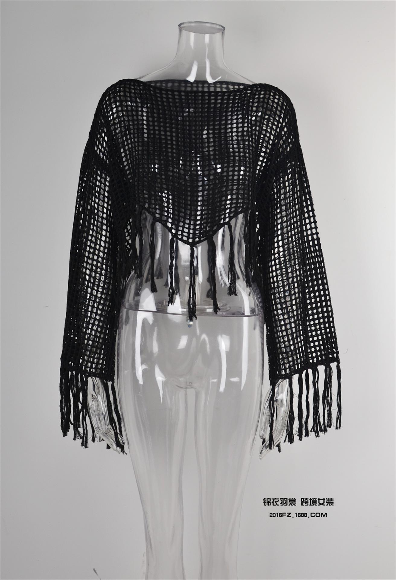 Europeo y Americano Amazon AliExpress más vendido tejido sexy hueco ganchillo flor bikini blusa protector solar protector solar de playa