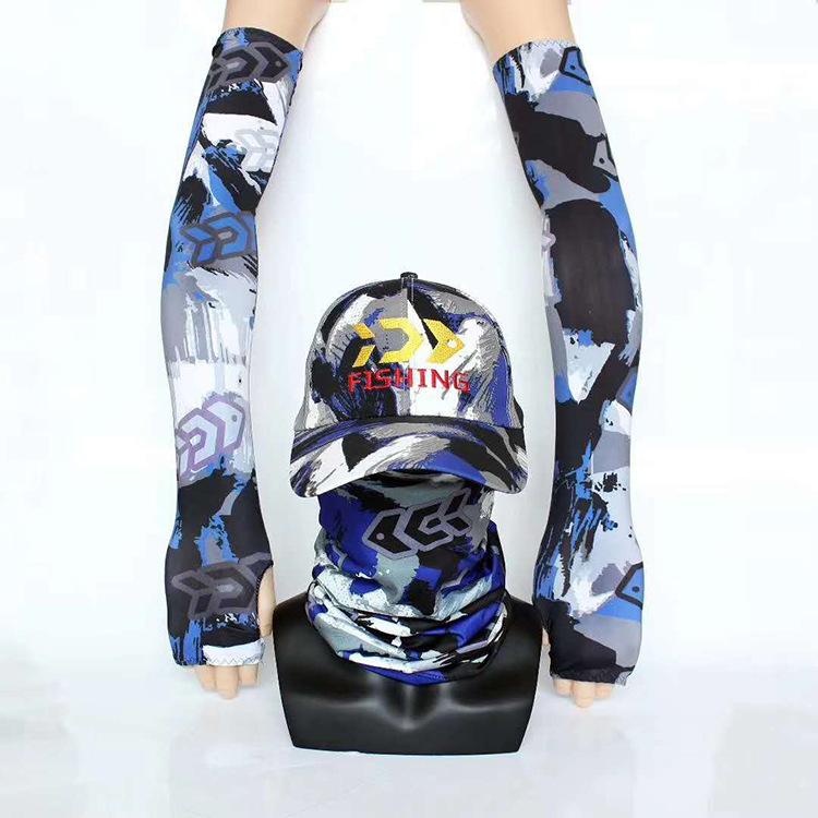 Manga de hielo para protección solar para pesca verano para montar en bicicleta pesca Toalla facial de seda de hielo manga gorra de pesca máscara juego de 4 piezas