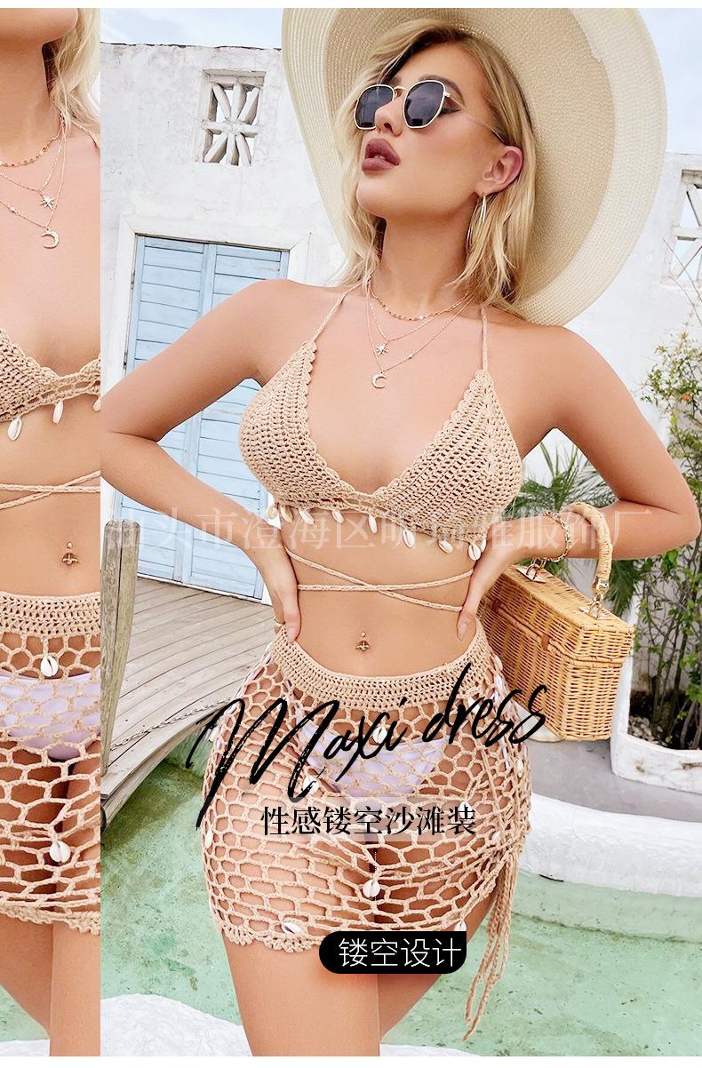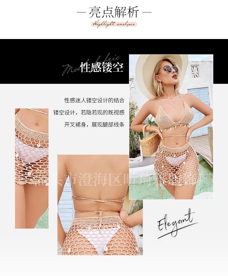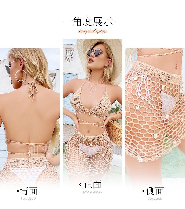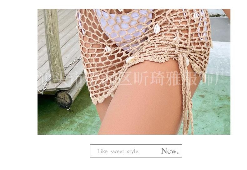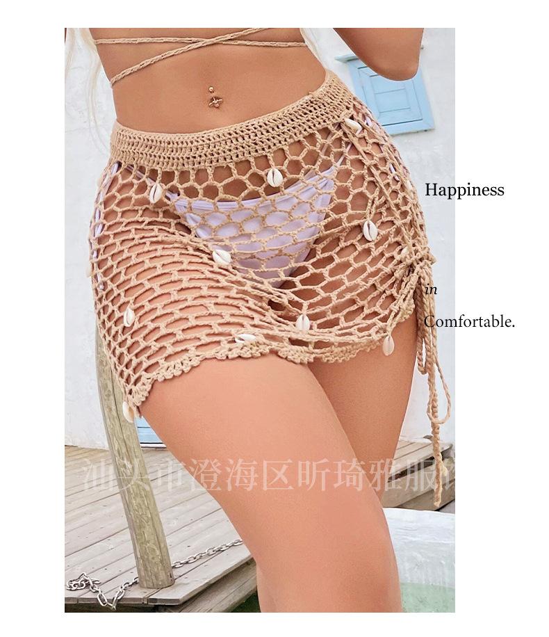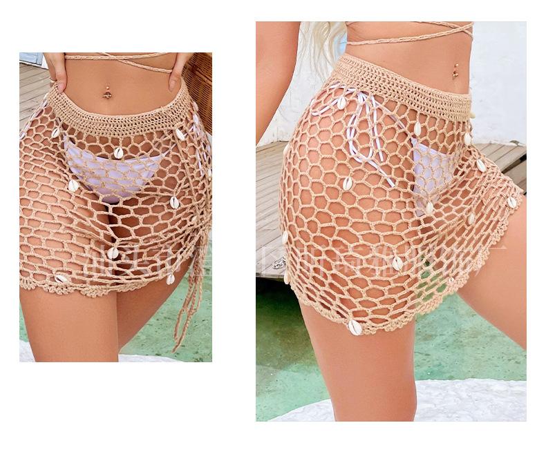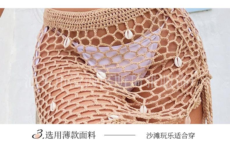 Falda de Playa Sexy Calada Falda de Bikini Tejido a Mano Ganchillo Casual Vacaciones Orilla del Mar Falda de Playa Venta al por Mayor Transfronteriza