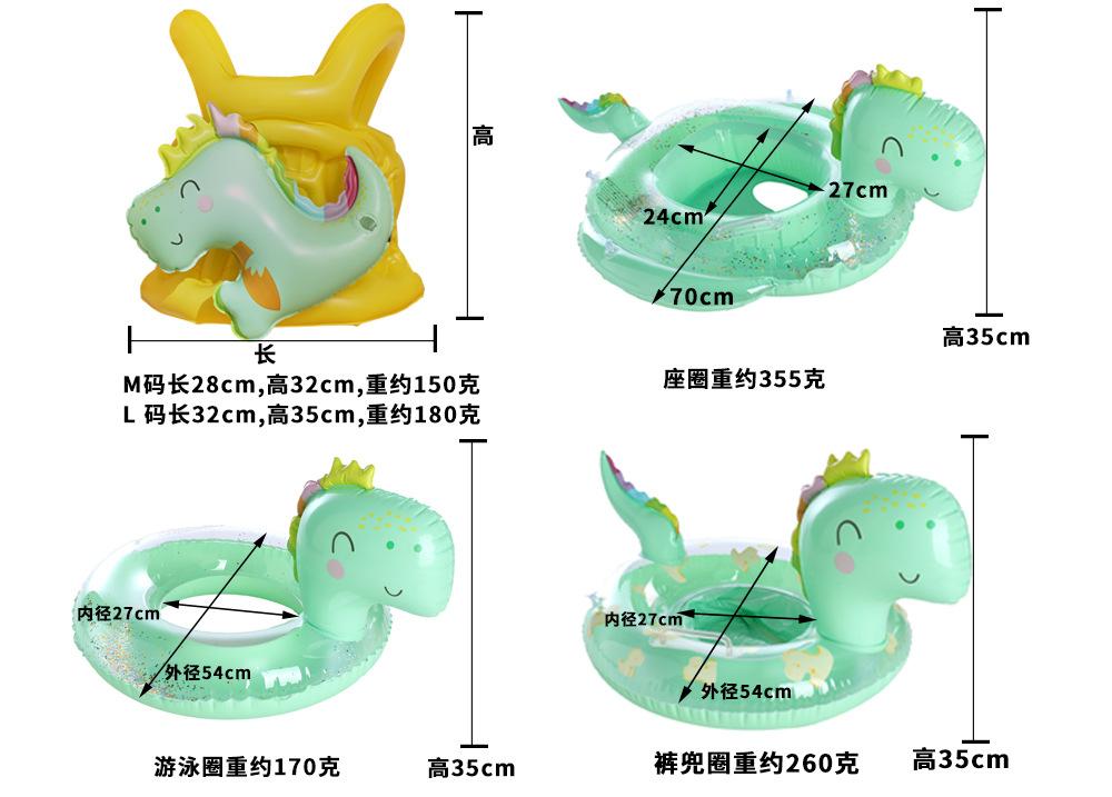 El traje de baño de dinosaurio talla M es adecuado para 2-5 años. La talla L es adecuada para 5-9 años.