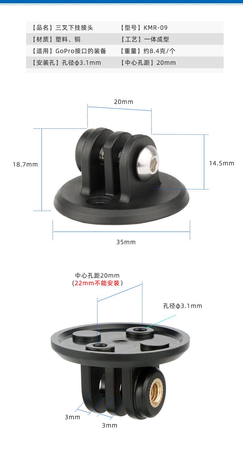 Adecuado para Base de Conexión Garmin Gopro Soporte para Computadora de Bicicleta Base para Computadora Colgante debajo de la Luz Tres Enchufes