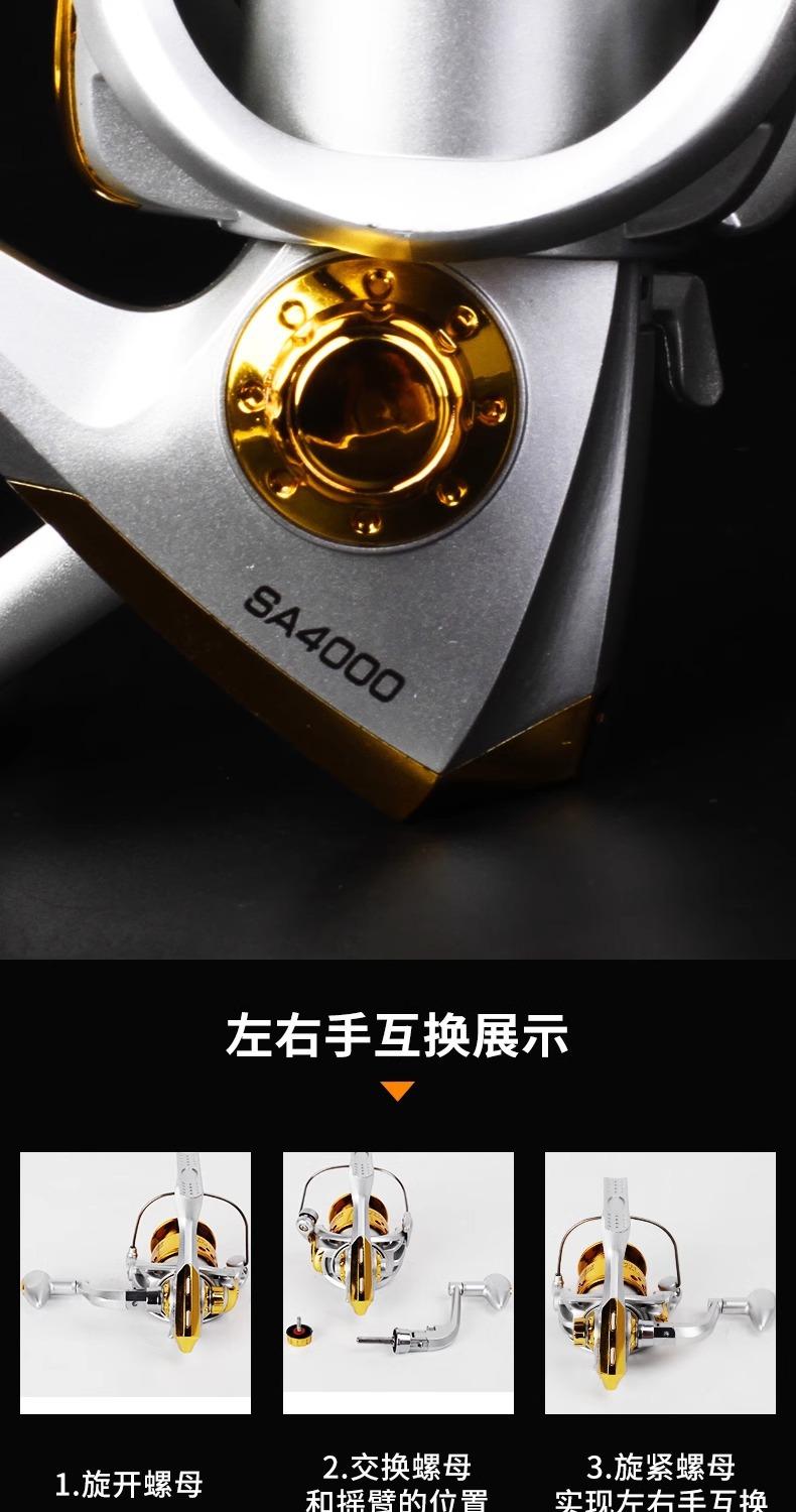 Carrete de pesca con rueda de aleta gigante King, movimiento de metal, rueda giratoria, cabezal de galvanoplastia especial, rueda de carretera asiática, caña de lanzamiento, caña de mar de tiro largo, rueda