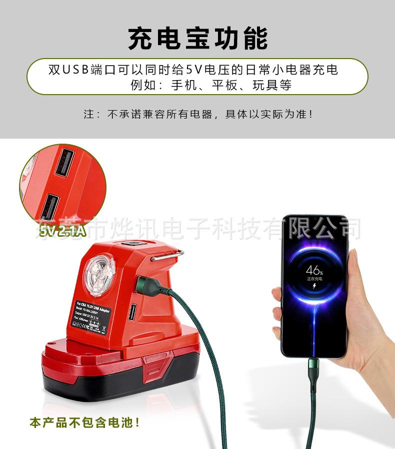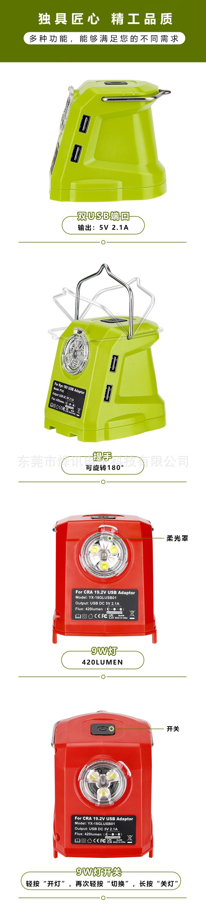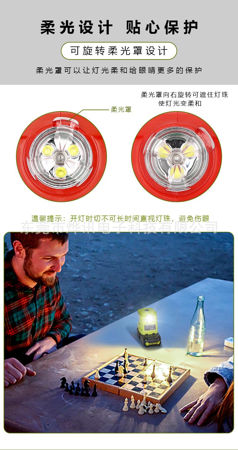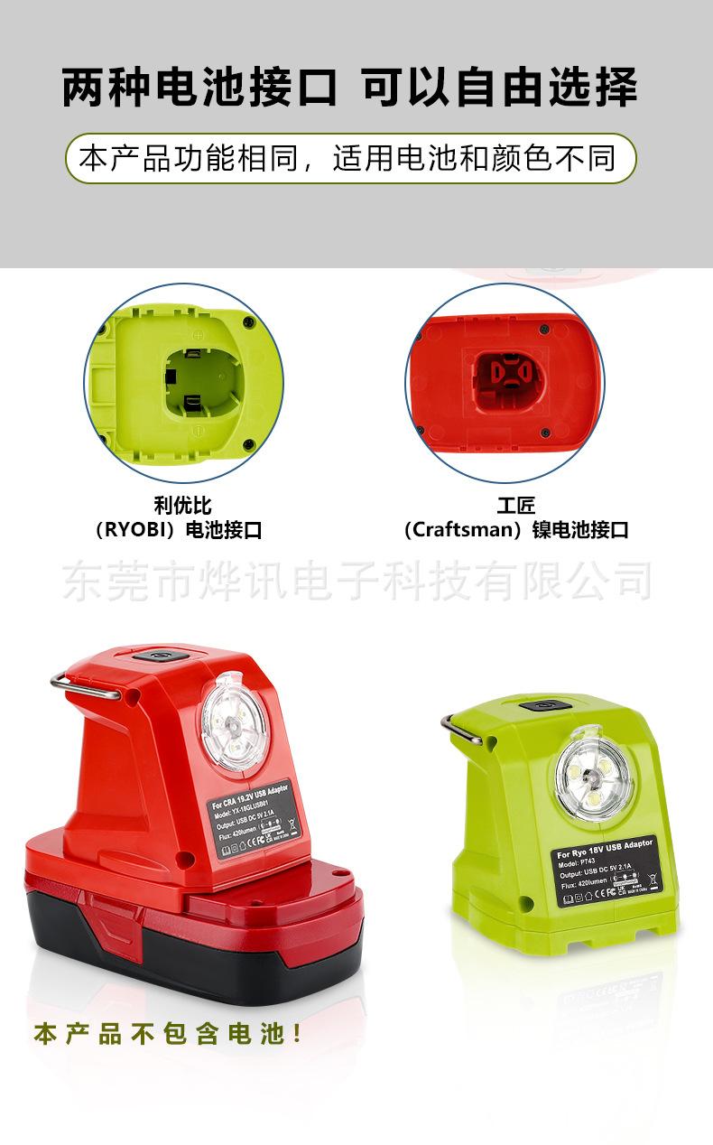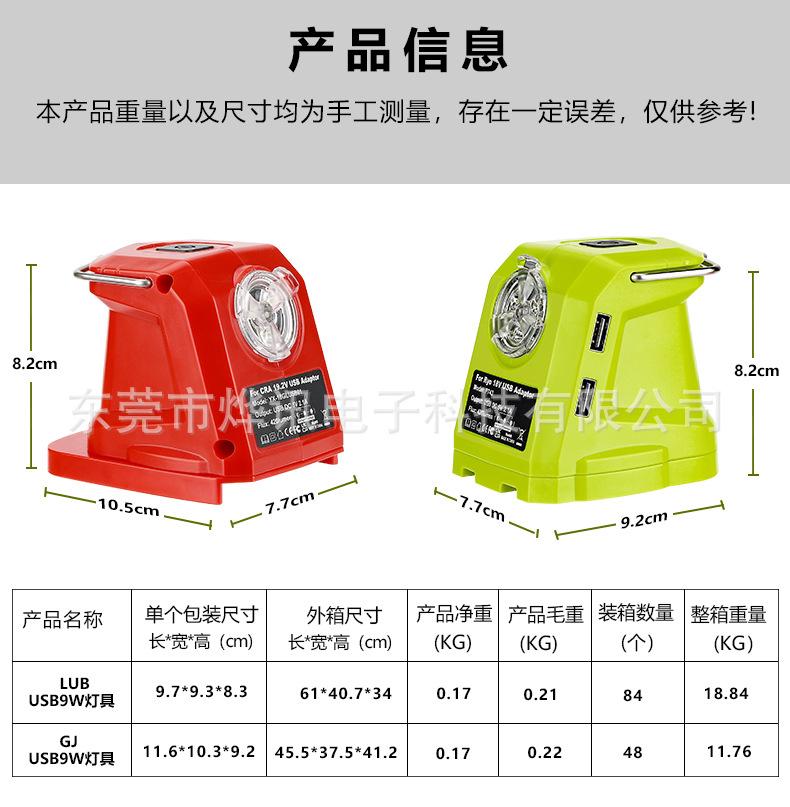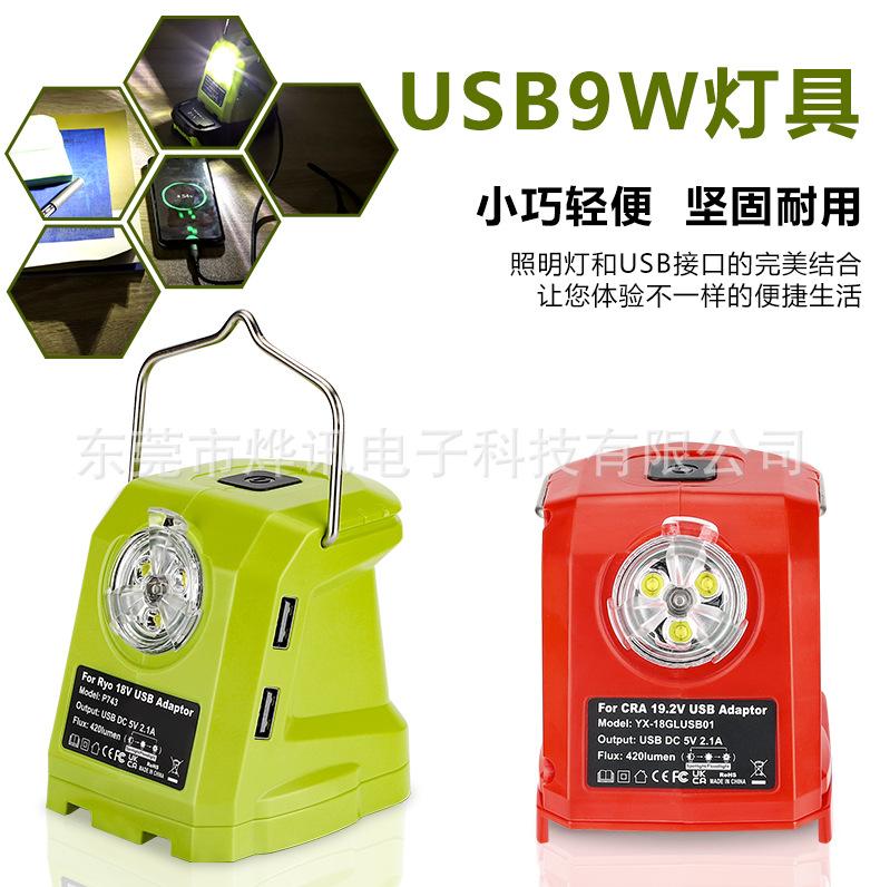 Lámparas USB de 9 W para exteriores compatibles con herramientas eléctricas Ryobi Liyoubi CRAFTSMAN CRAFTSMAN con batería de níquel-litio de 18 V.