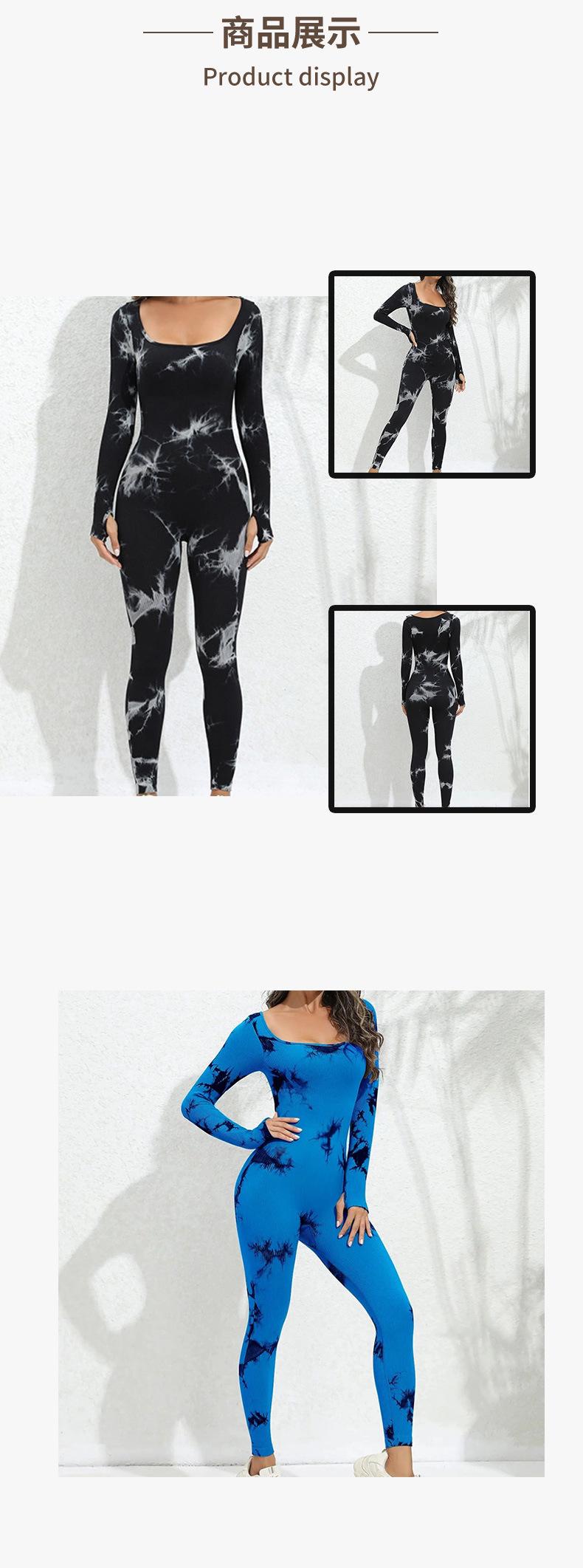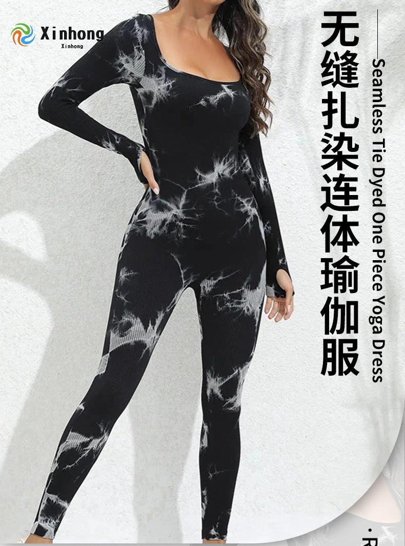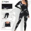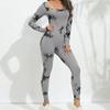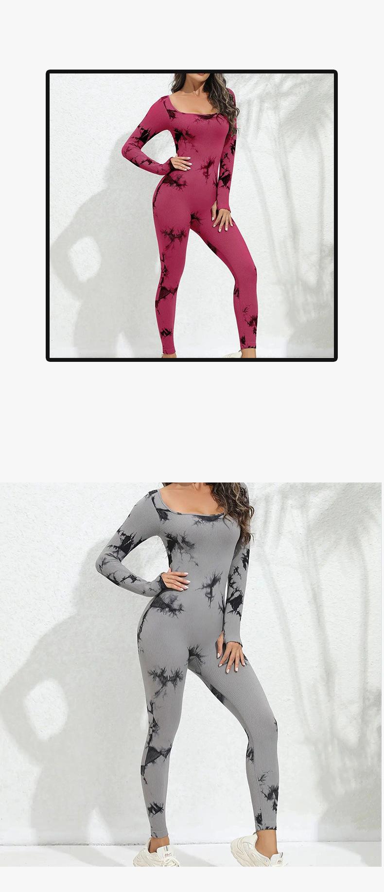 Mono de yoga deportivo multicolor de una pieza ajustado de manga larga con hilo teñido anudado sin costuras transfronterizo