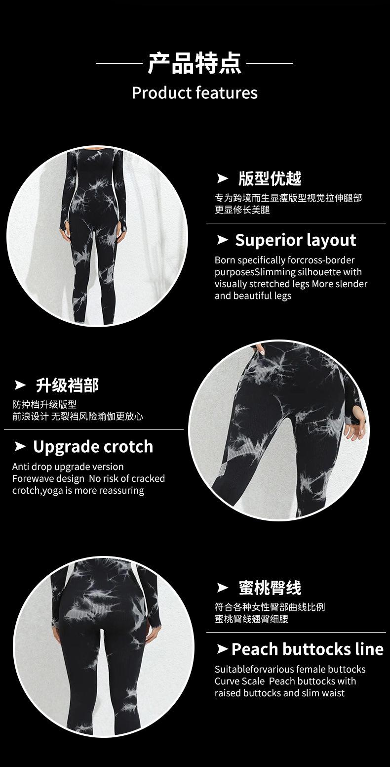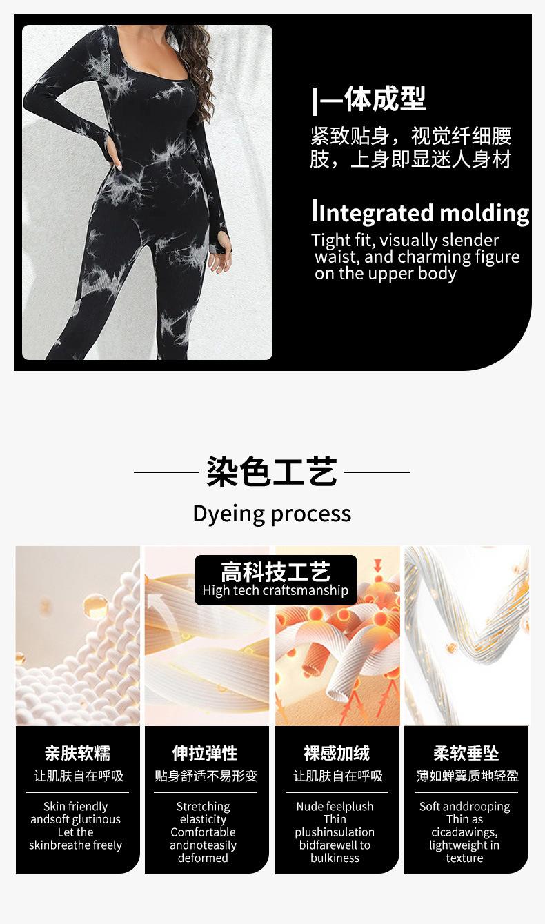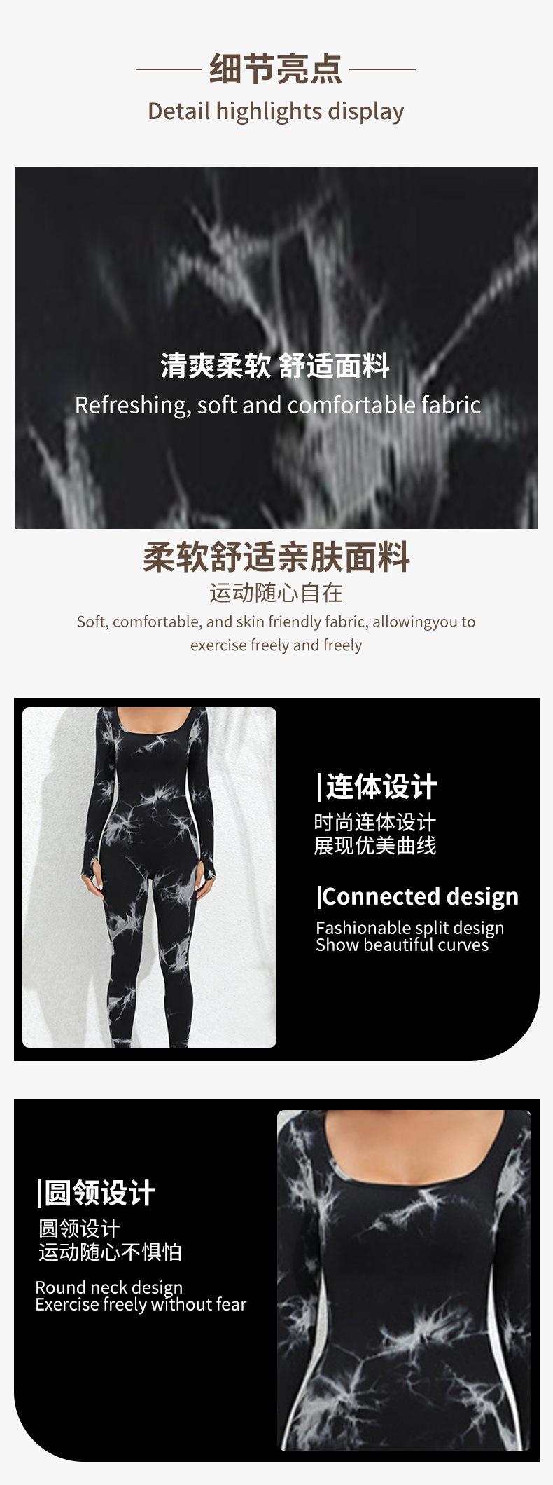 Mono de yoga deportivo multicolor de una pieza ajustado de manga larga con hilo teñido anudado sin costuras transfronterizo