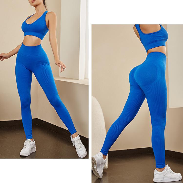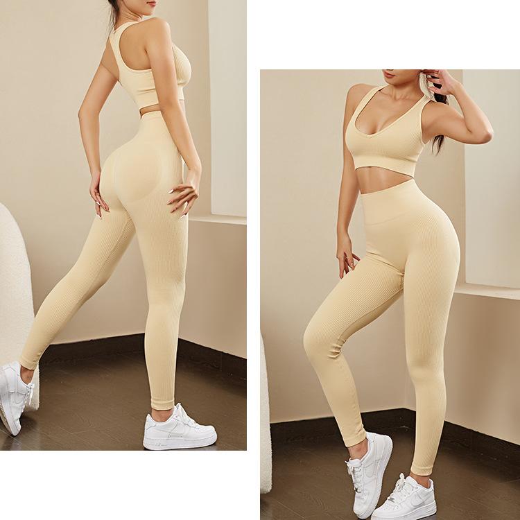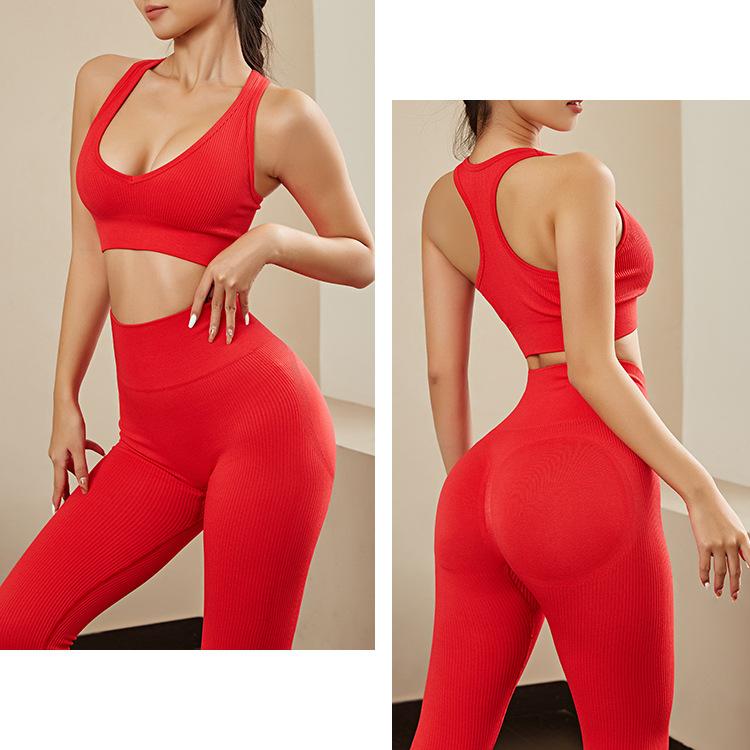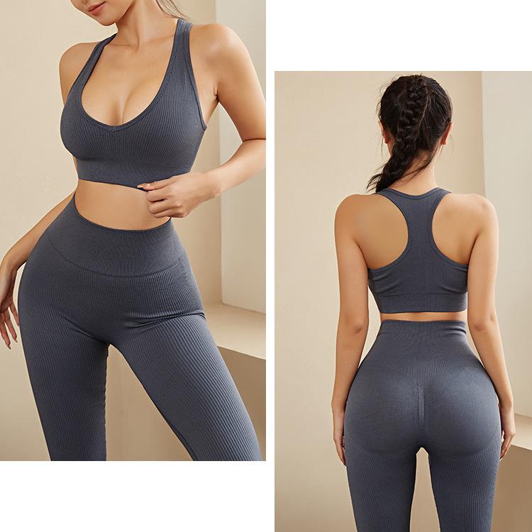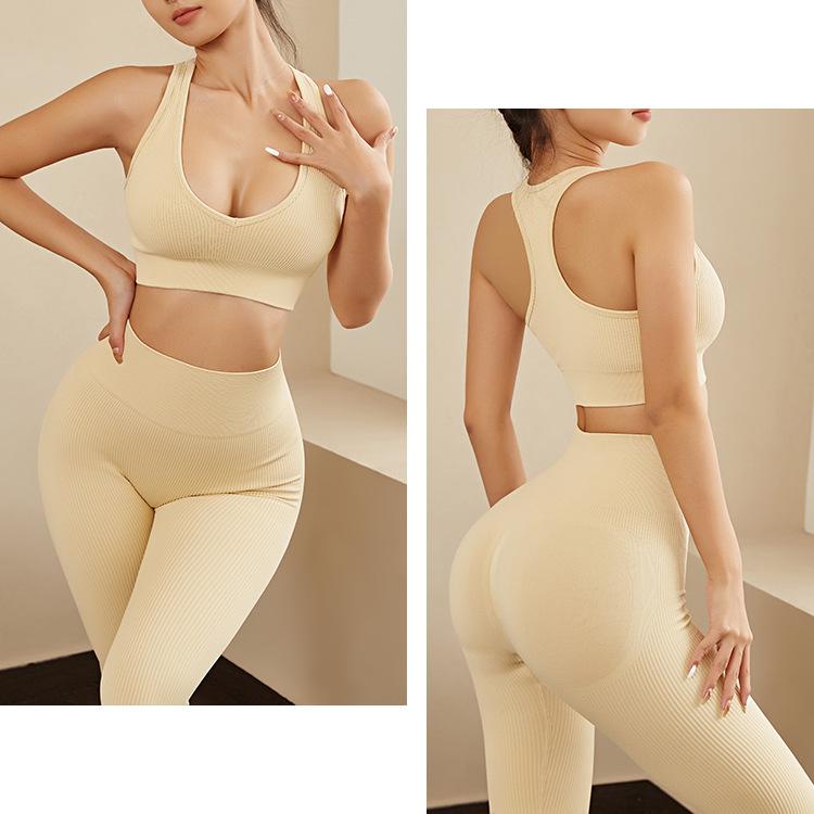 Conjunto deportivo de dos piezas para mujer, con sujetador de espalda descubierta, cintura alta, elástico y ajustado, para yoga, estilo europeo y americano.