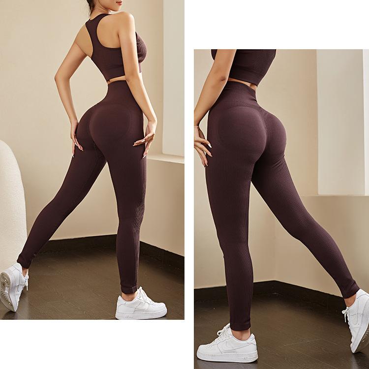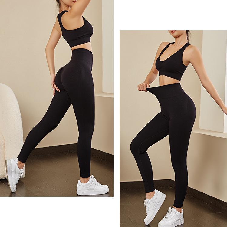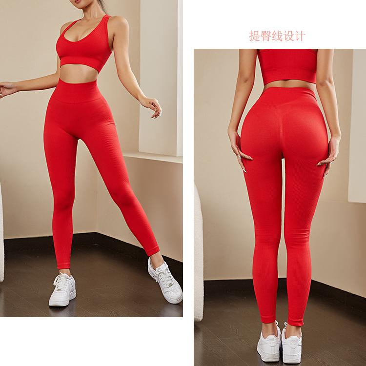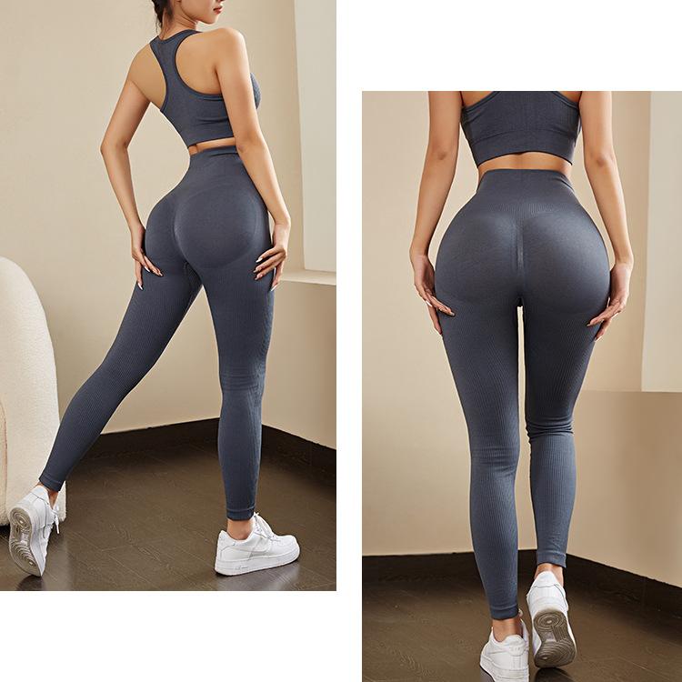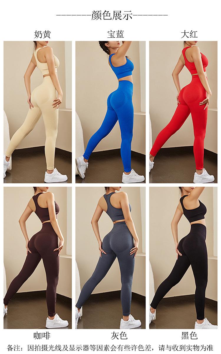 2023 nuevos trajes de yoga sin costuras transfronterizos europeos y americanos, trajes de fitness deportivos al aire libre para mujeres lavados con arena, levantamiento de caderas y espalda hermosa