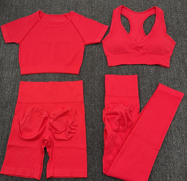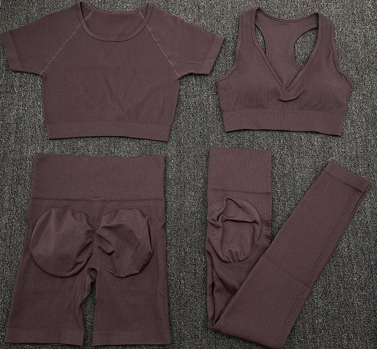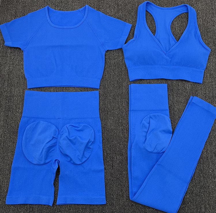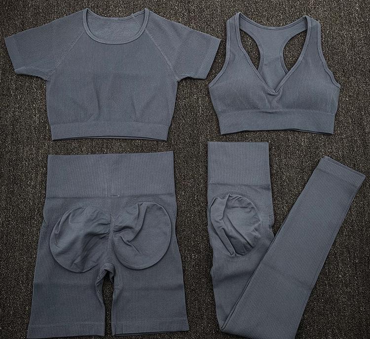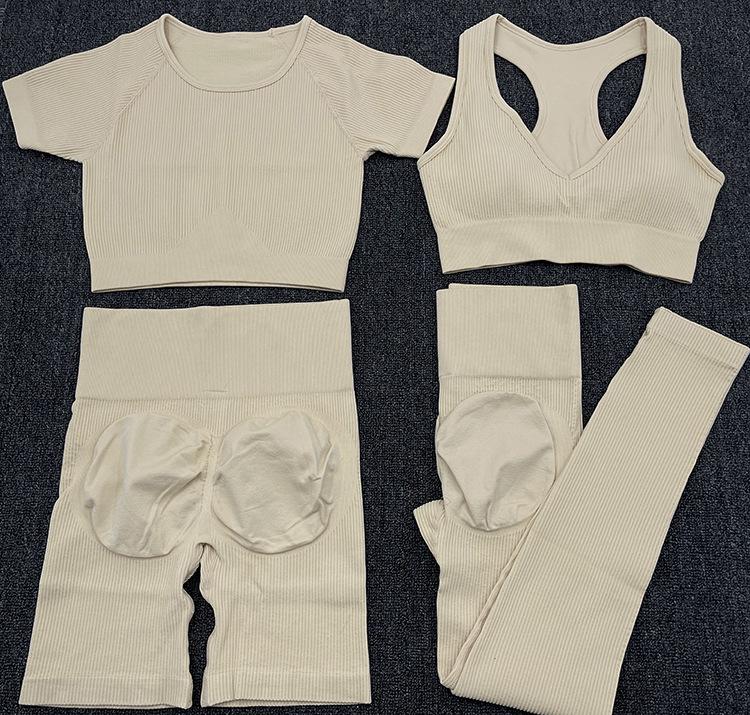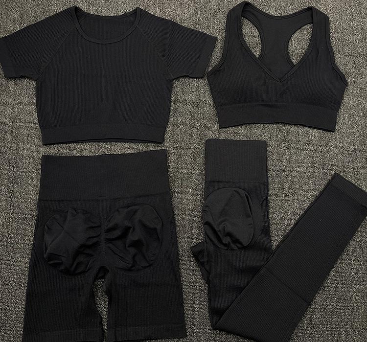 Conjunto de cinco piezas de pantalones cortos y sujetador de manga corta y manga larga de estilo europeo y americano, top de fitness, chaleco, ropa de yoga de punto de comercio exterior