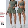 Traje de yoga plisado sin costuras europeo y americano de dos piezas para mujer, para fitness al aire libre, cintura alta, ajustado, de manga corta