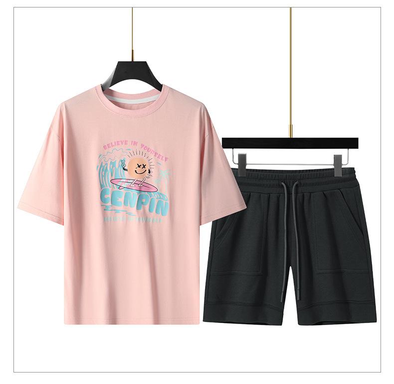 Traje de moda informal para mujer, verano 2024, fino, holgado, elegante, combinable con todo, estilo Hong Kong, deportivo, de manga corta, pantalones cortos, conjunto de dos piezas