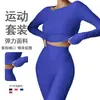 Traje de yoga europeo y americano para mujer, traje deportivo para correr y fitness, top de manga larga con burbujas, pantalones de yoga de cintura alta y cadera.