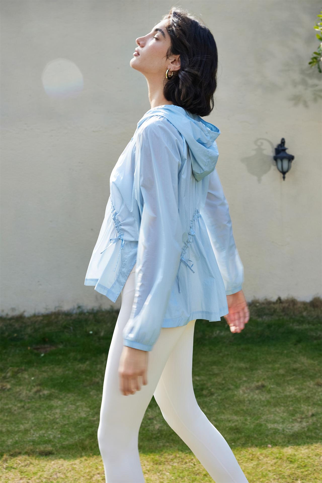 Verano Nuevo Ultradelgado Top Deportivo con Capucha y Cordón Chaqueta Casual Transpirable de Secado Rápido Blusa de Fitness para Mujer Impermeable