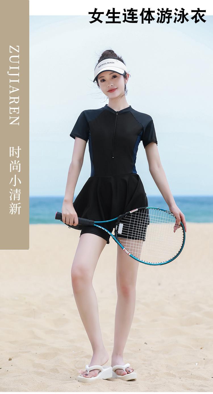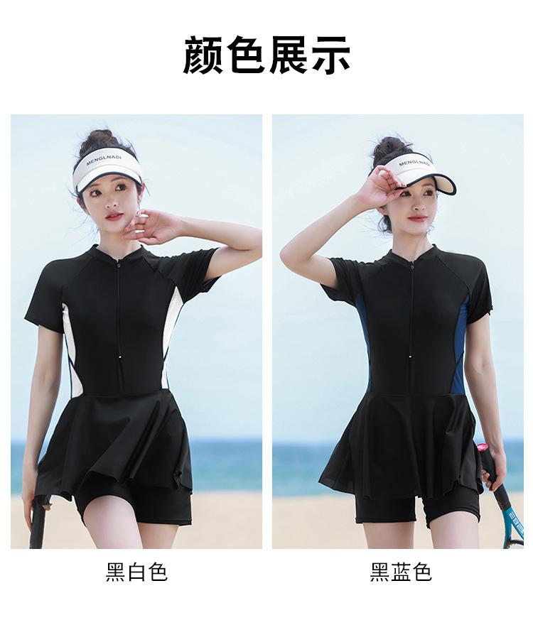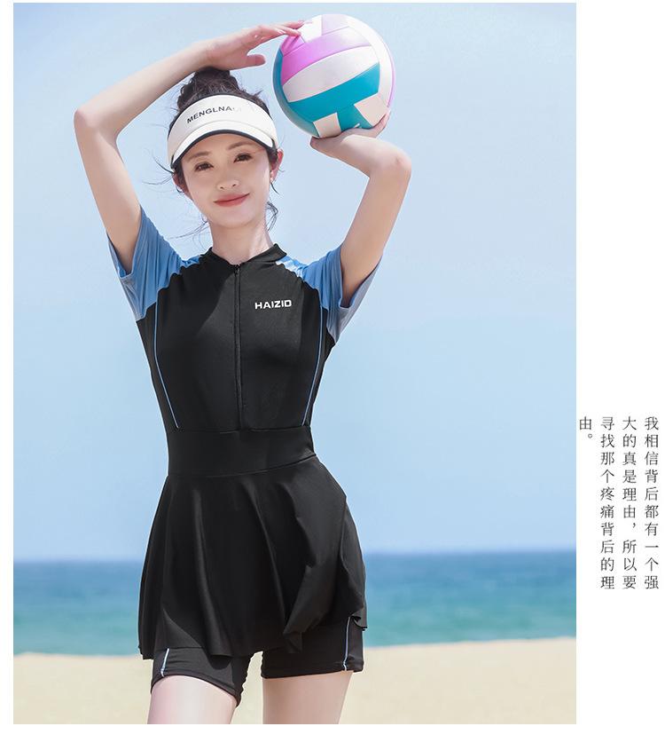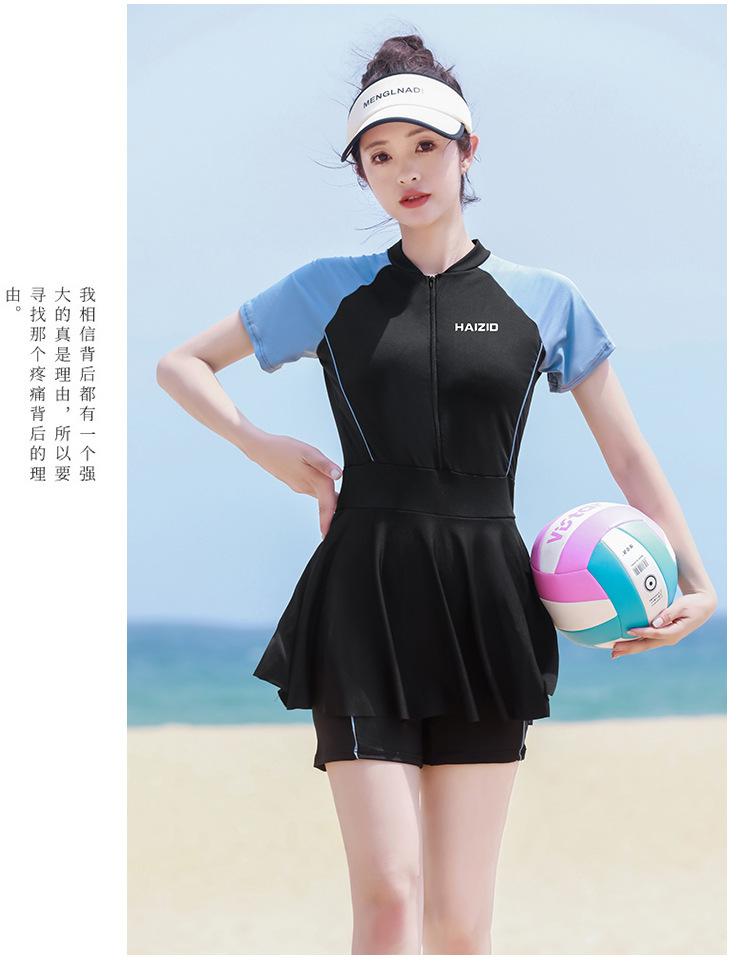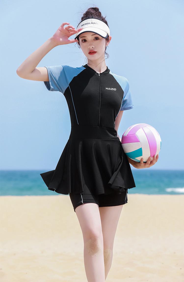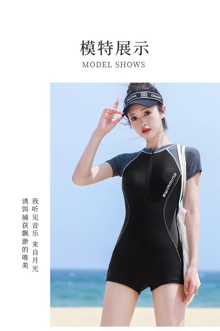 Traje de baño de una pieza para mujer en verano, estilo nuevo conservador, baño de aguas termales para cubrir la barriga y hacerte lucir delgada, traje de baño deportivo tipo bóxer de manga larga y corta para estudiantes.