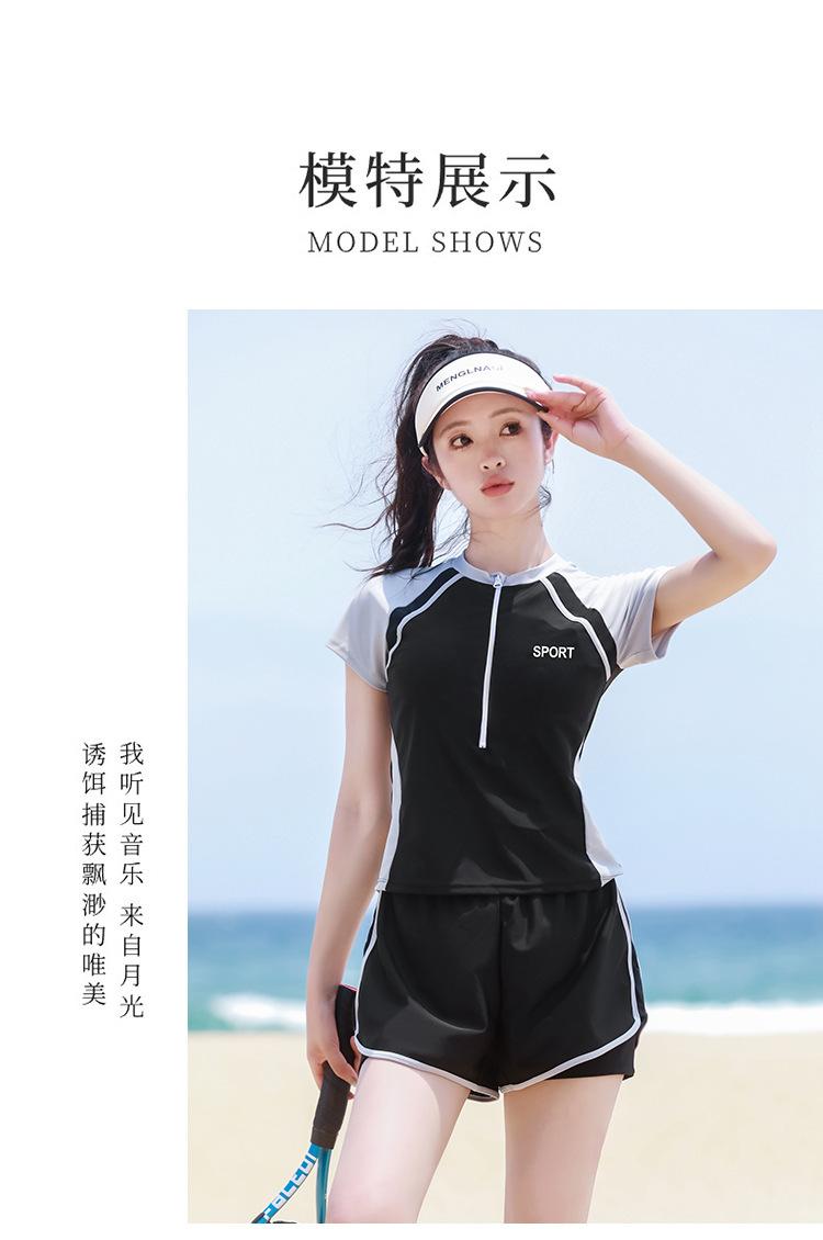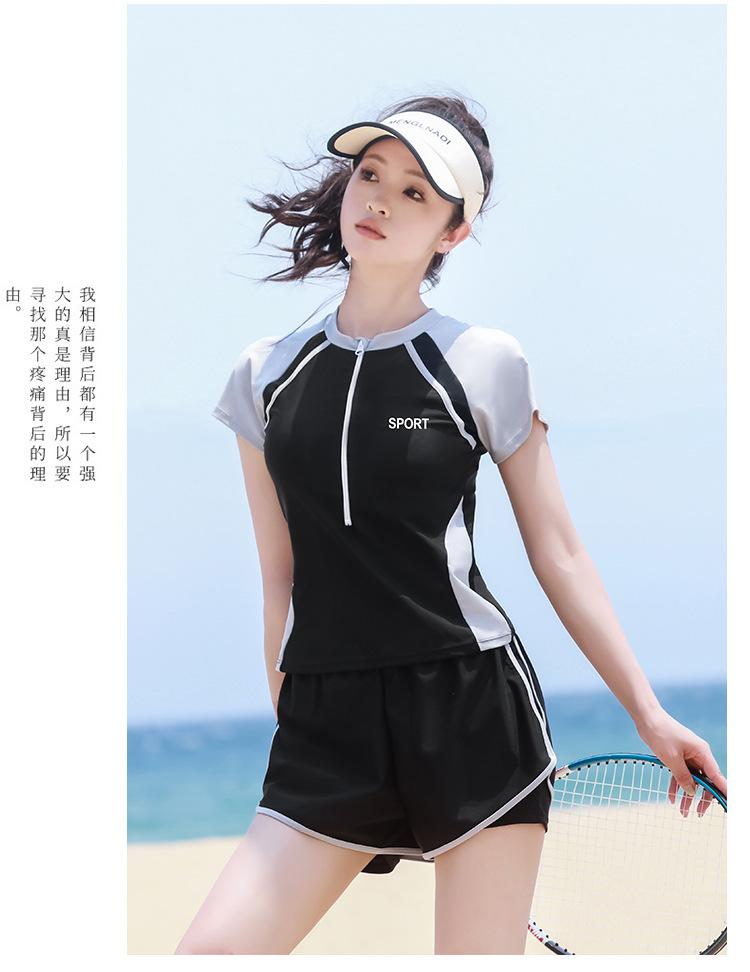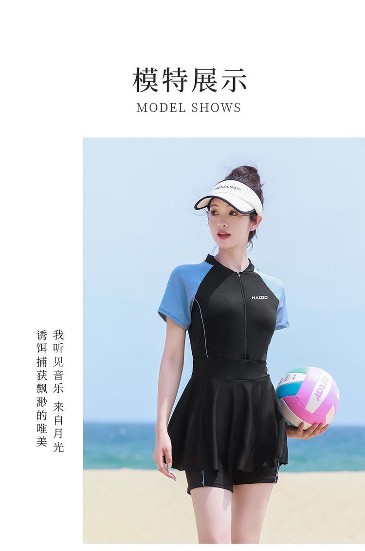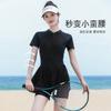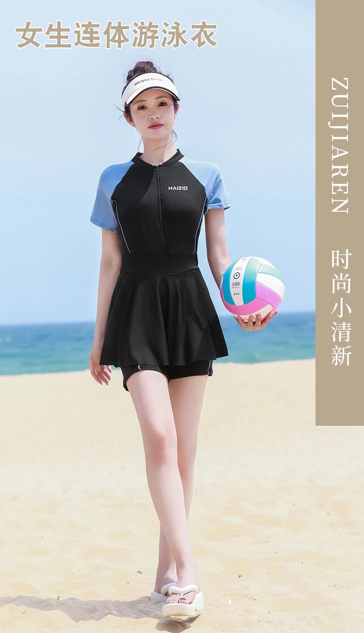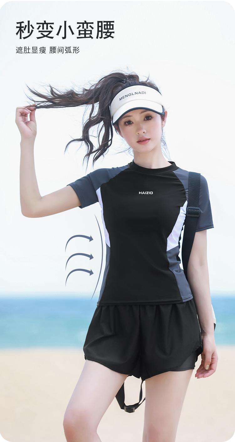 Traje de baño de una pieza para mujer en verano, estilo nuevo conservador, baño de aguas termales para cubrir la barriga y hacerte lucir delgada, traje de baño deportivo tipo bóxer de manga larga y corta para estudiantes.