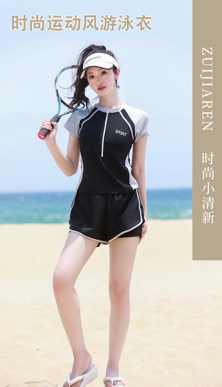 Traje de Baño de Una Pieza para Mujer 2024 Nueva Moda Estilo Deportivo Conservador Secado Rápido Traje de Baño con Pantalón Corto Traje de Baño Profesional para Aguas Termales