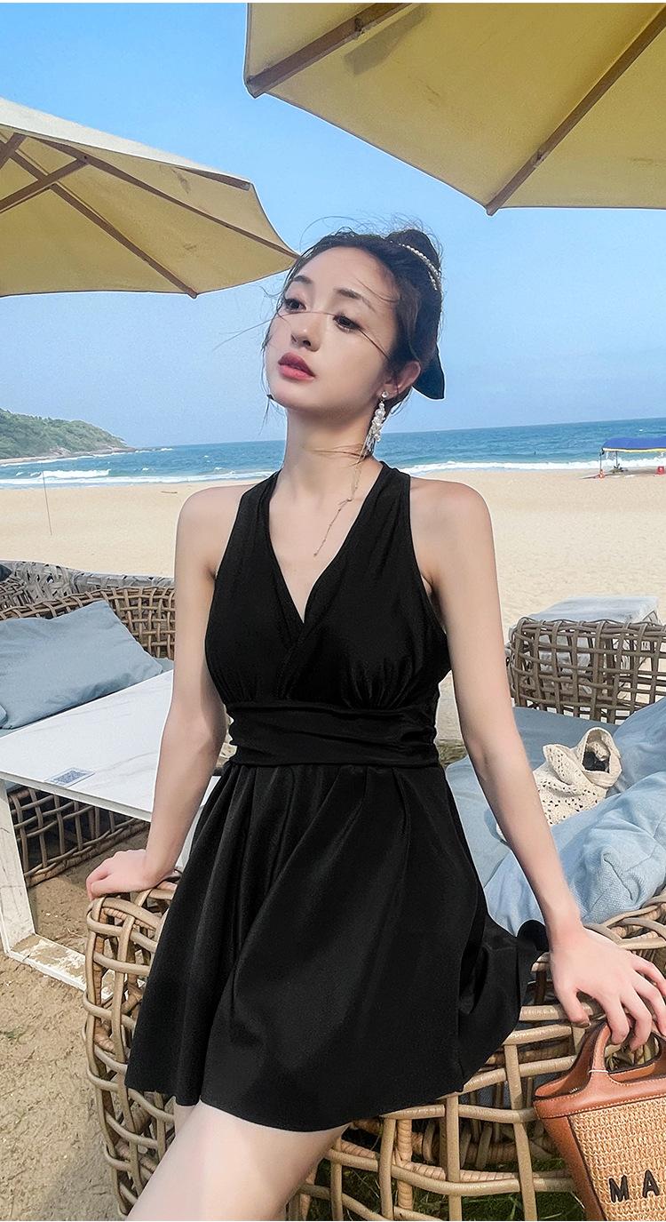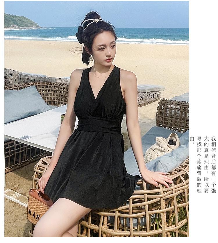 Traje de baño 2024 nuevo para mujer, antiexposición, talla grande, ligeramente grueso, mm puro deseo, traje de baño de una pieza para deportes de ocio, conservador, que cubre el vientre.