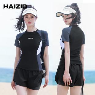 Traje de baño para mujer 2024, nuevo estilo, traje de baño adelgazante que cubre el vientre, traje de baño de una pieza conservador de manga larga, traje de baño de manga corta de aguas termales al por mayor