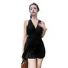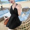 Traje de baño para damas talla grande conservador sexy falda de una pieza traje de baño cuello en V aguas termales traje de baño sin espalda fábrica mayoreo