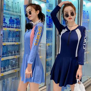 Traje de baño coreano femenino sexy de manga larga para parque acuático, piscina, traje de baño conservador, traje de baño delgado con cobertura de vientre para niñas con almohadillas para el pecho