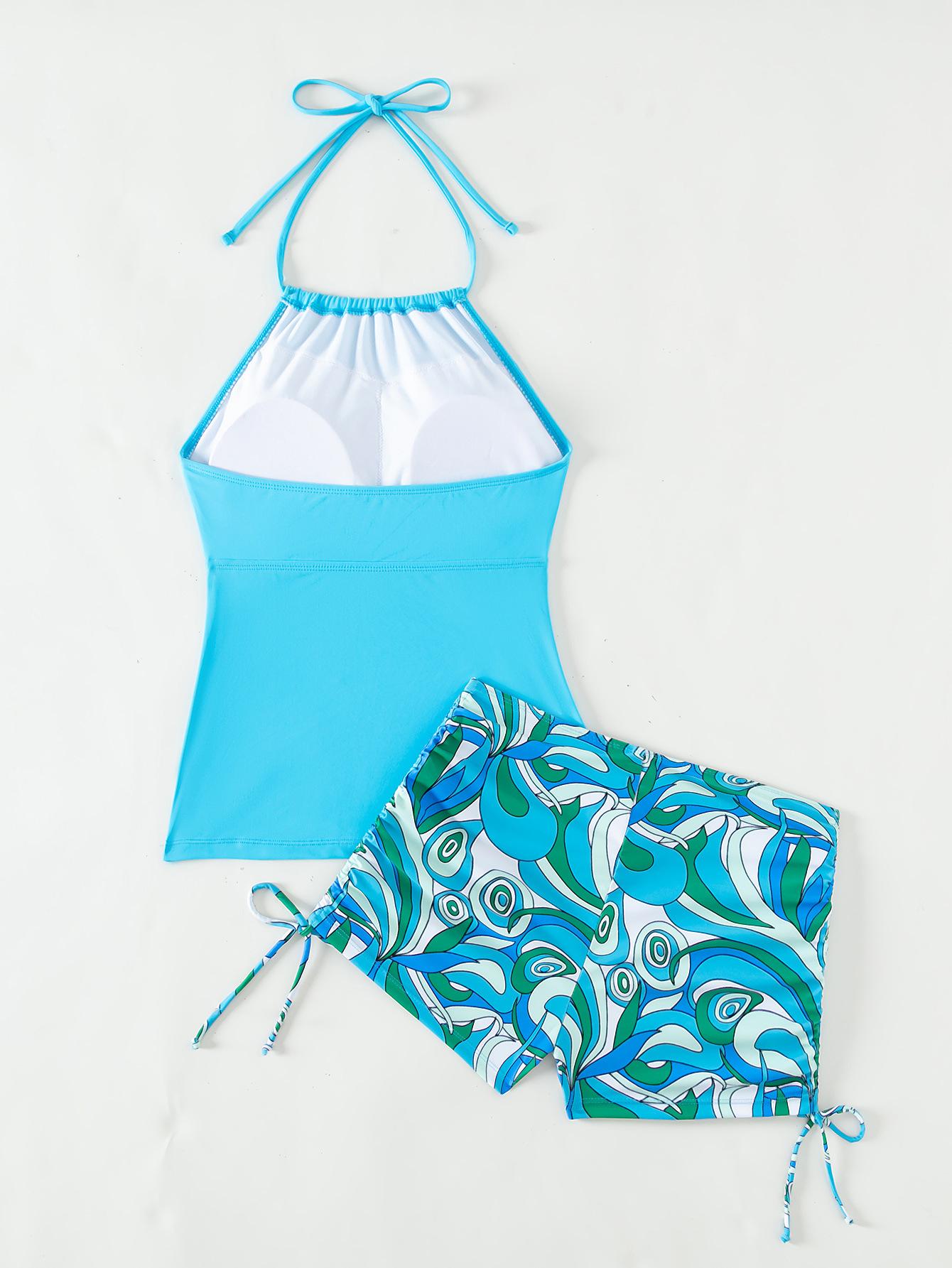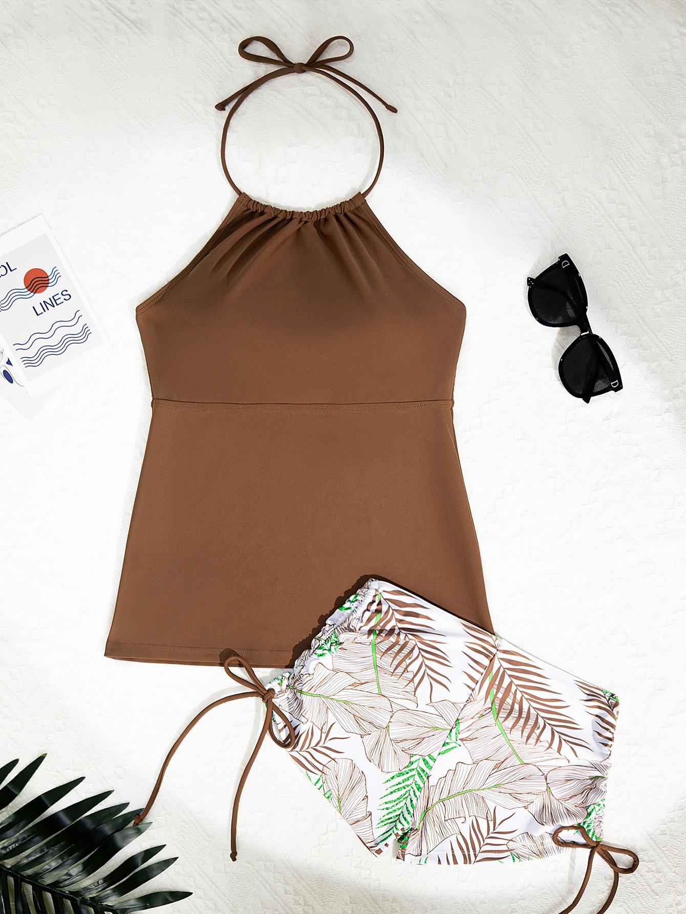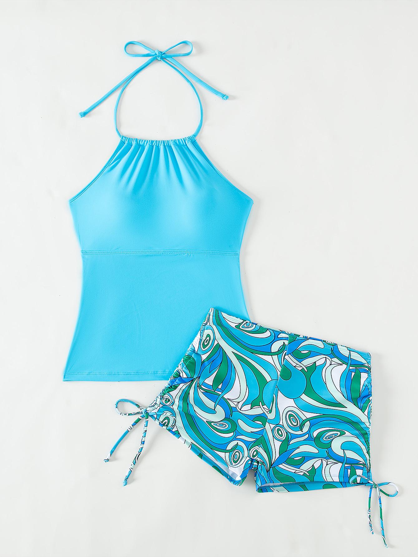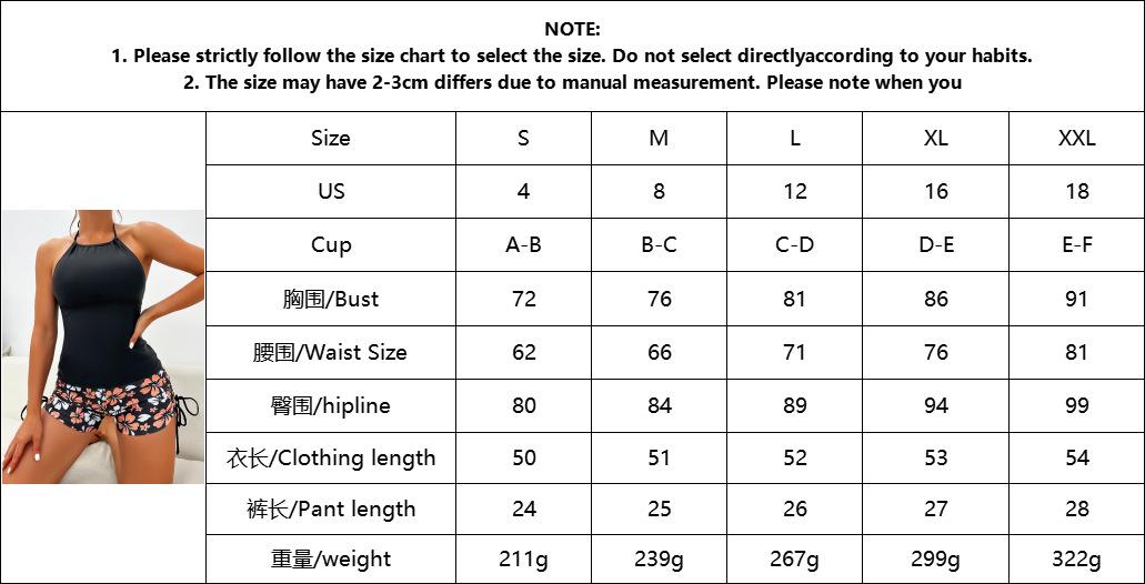 2024 nuevo tankini transfronterizo europeo y americano estampado pantalones boxer cuello colgante bikini conservador dividido traje de baño