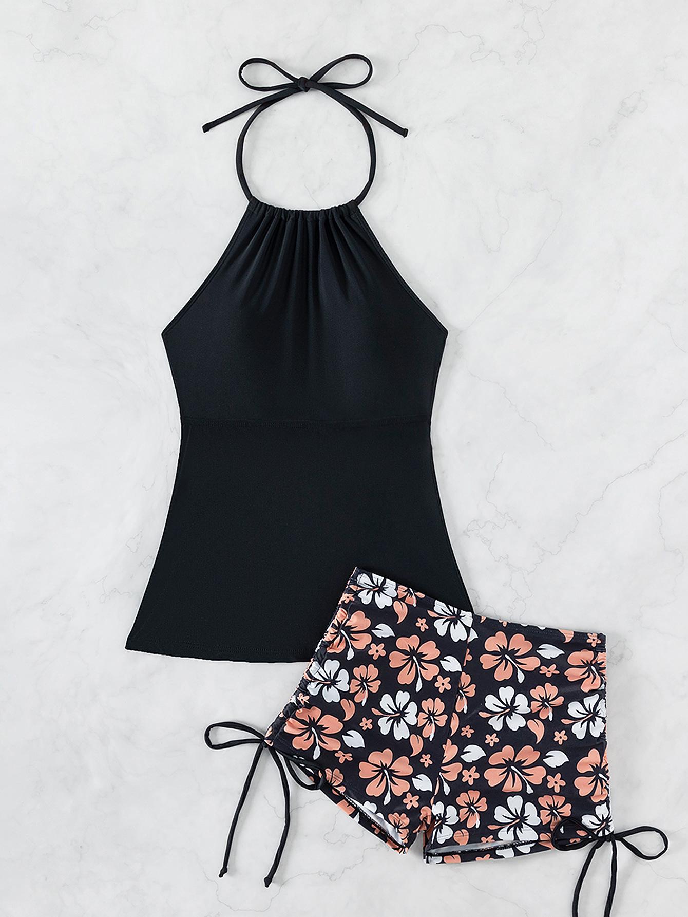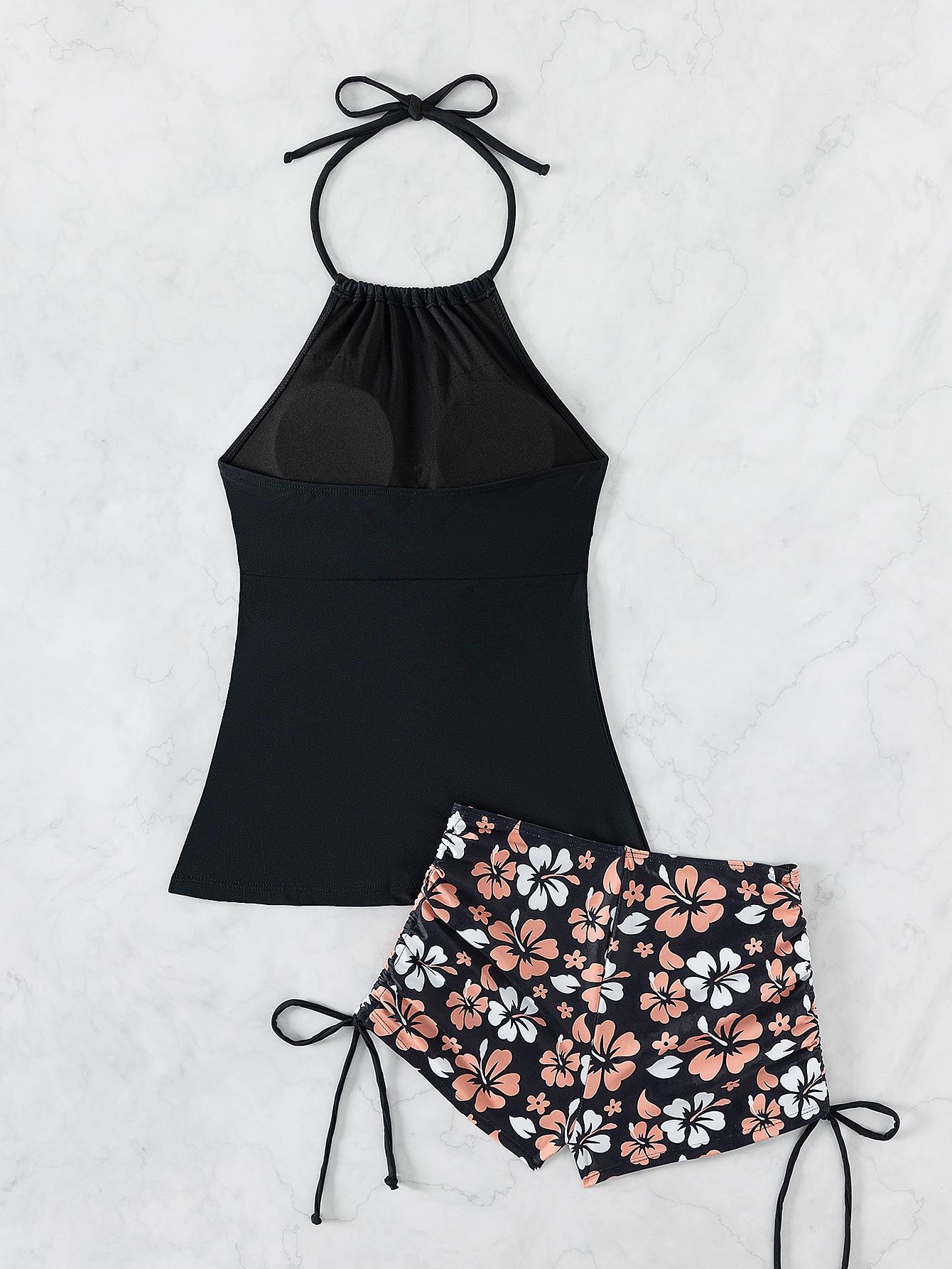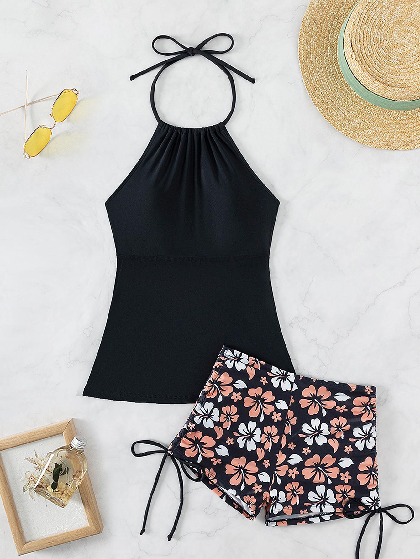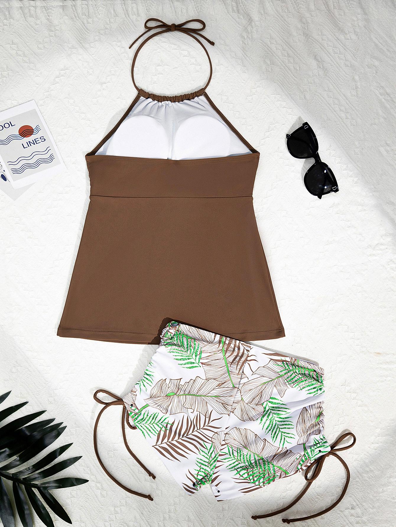 2024 nuevo tankini transfronterizo europeo y americano estampado pantalones boxer cuello colgante bikini conservador dividido traje de baño