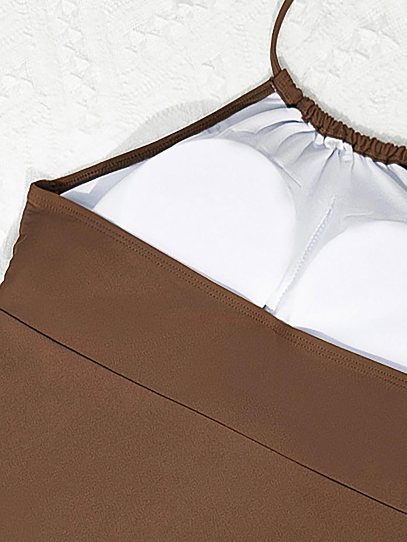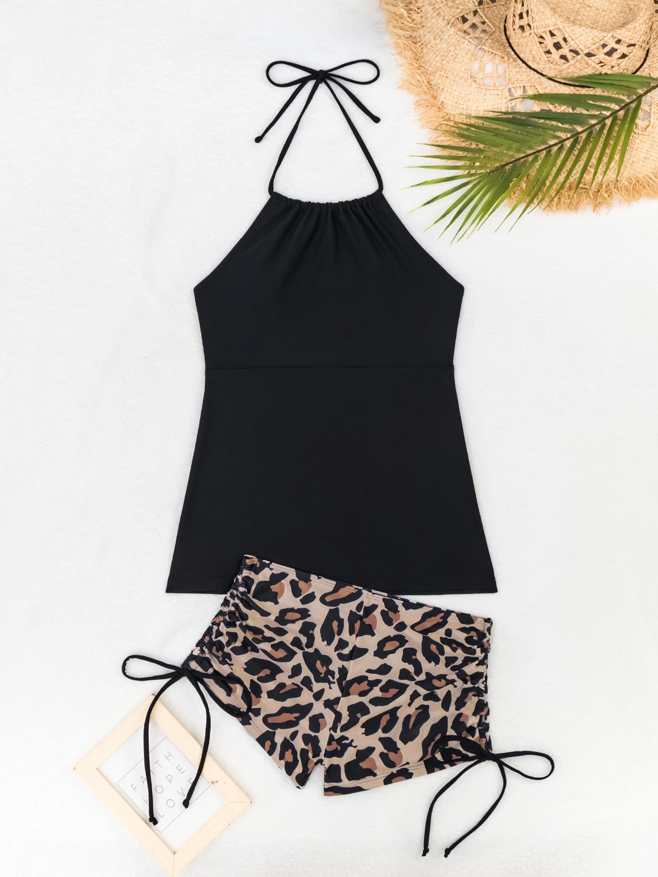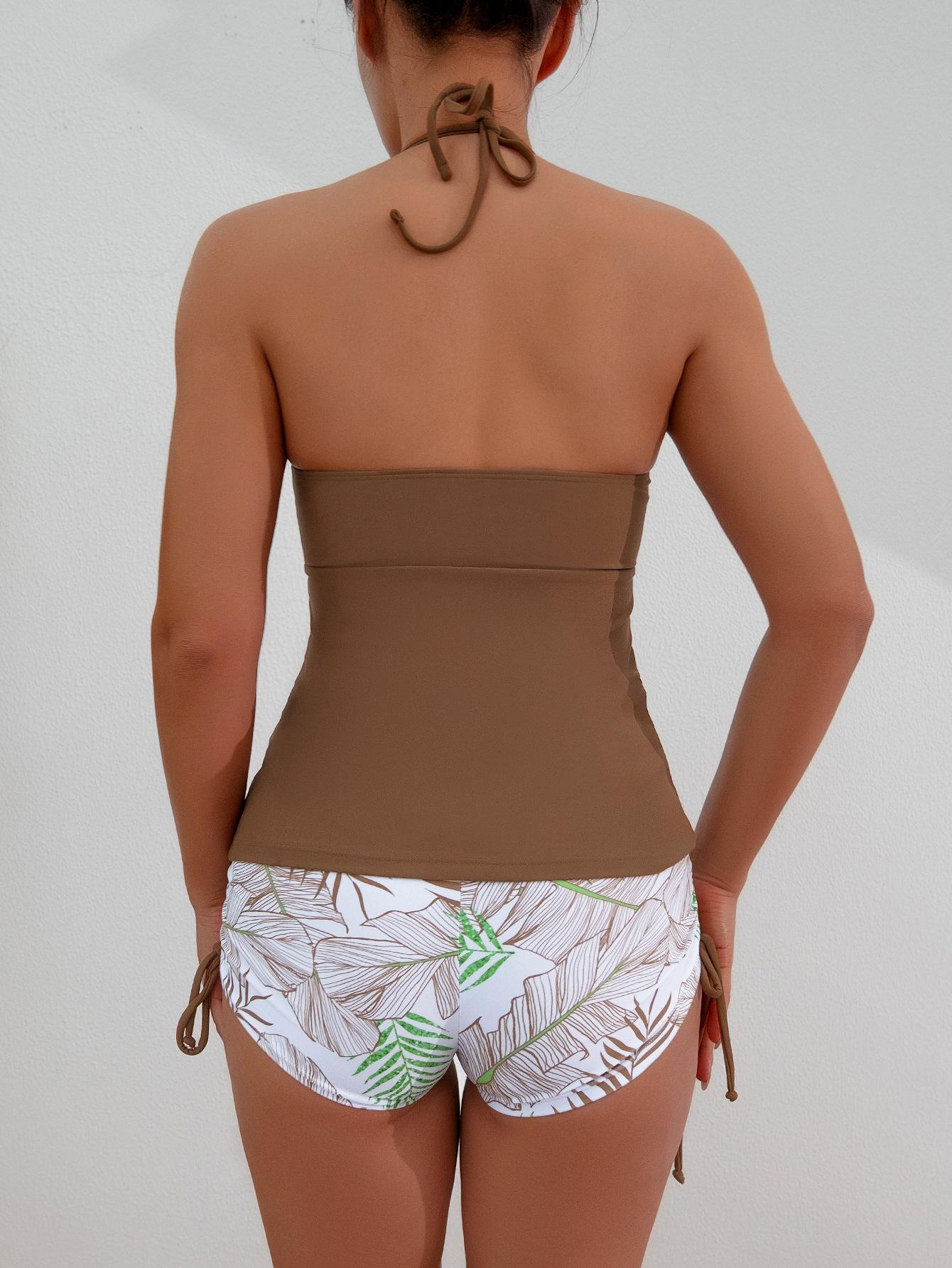 2024 nuevo tankini transfronterizo europeo y americano estampado pantalones boxer cuello colgante bikini conservador dividido traje de baño