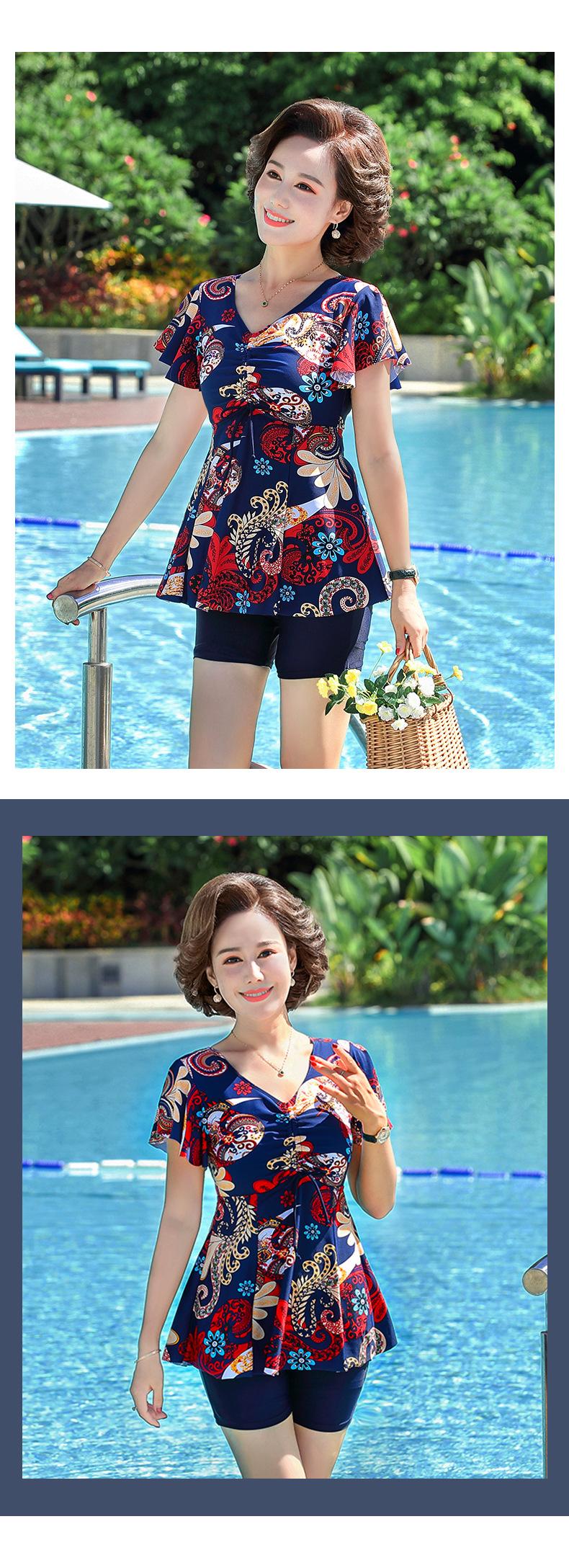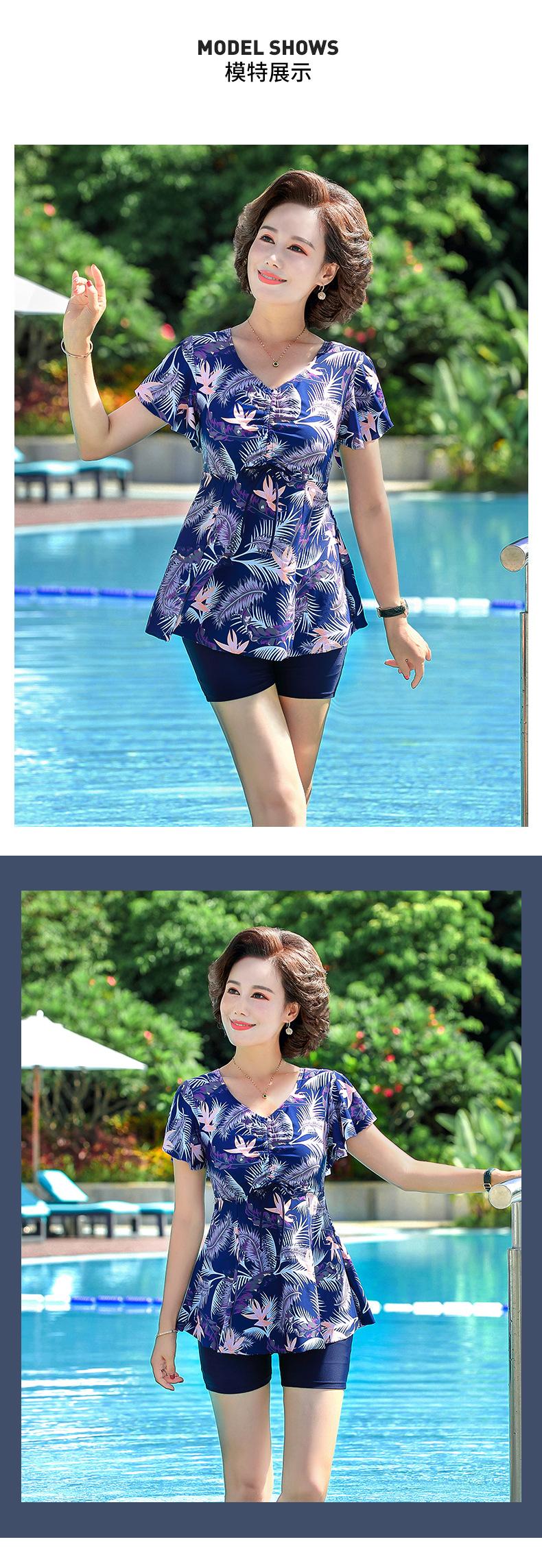 Traje de baño Youyou para mujer, que cubre el vientre, adelgazante, dividido, conservador, de talla grande, traje de baño de aguas termales para personas de mediana edad y mayores.