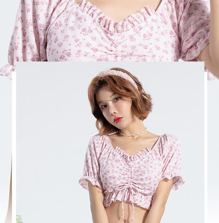 Traje de Baño Floral Dividido Estilo Coreano para Mujer Traje de Baño de Dos Piezas para Vacaciones Suave y Sexy Traje de Baño Push-Up para Aguas Termales Venta al por Mayor