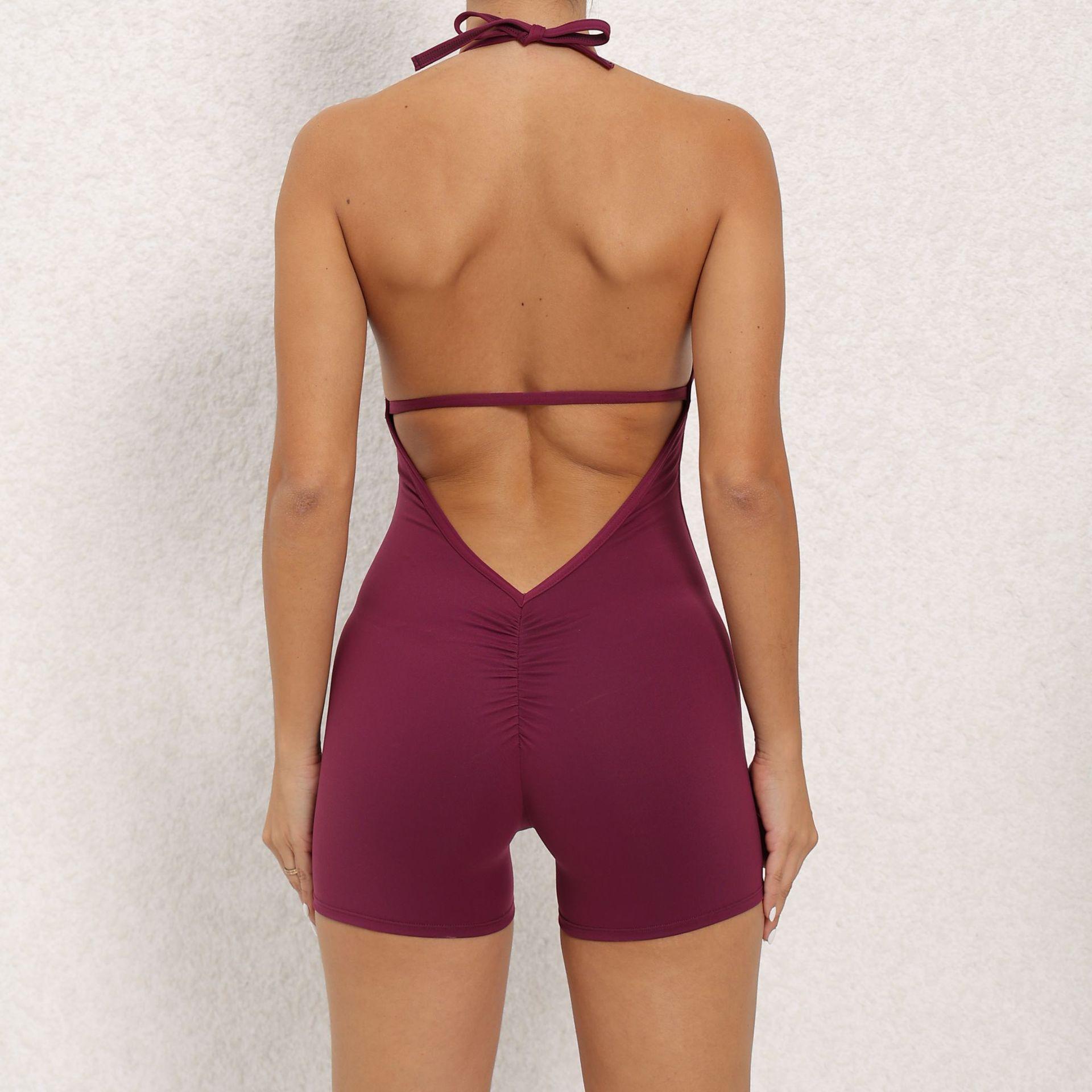 Nuevo Traje Deportivo de Fitness de una Pieza Europeo y Americano para Yoga, Danza, Ajustado, Skinny, Cadera Melocotón, Mono, Traje de Yoga para Mujer