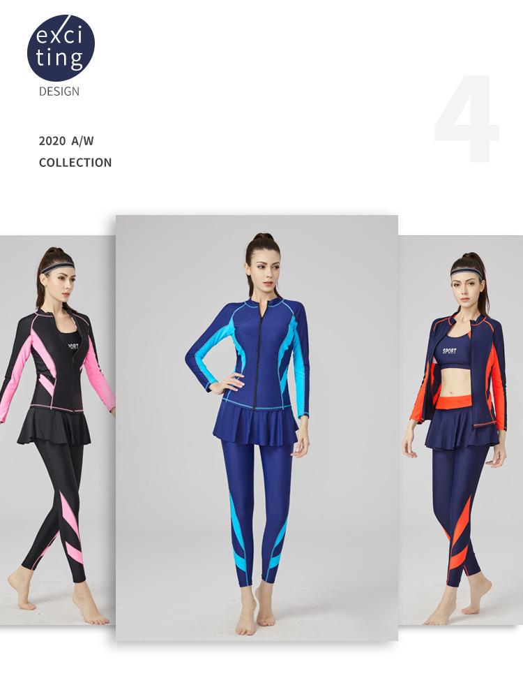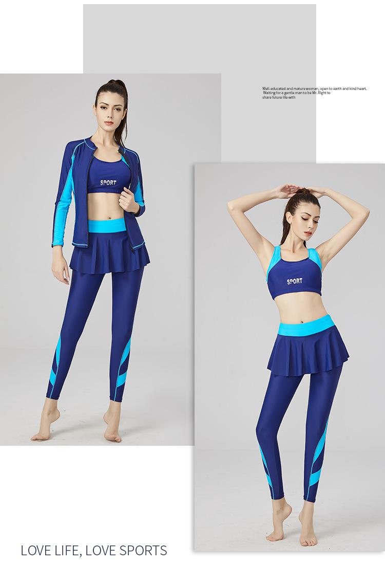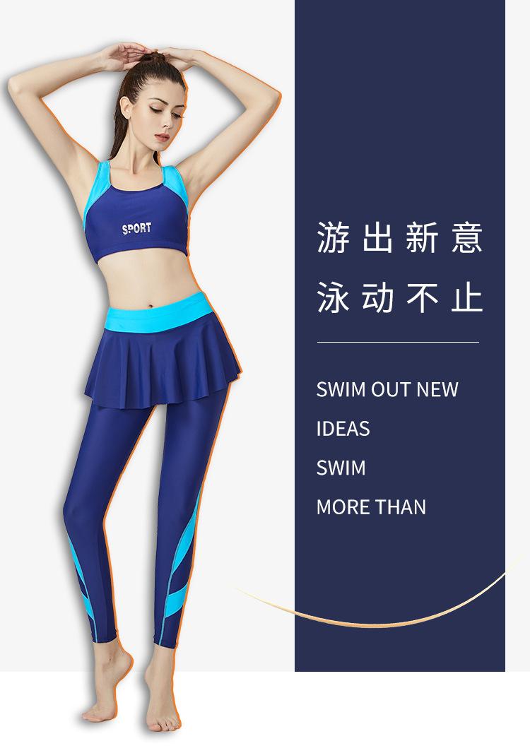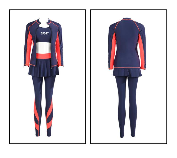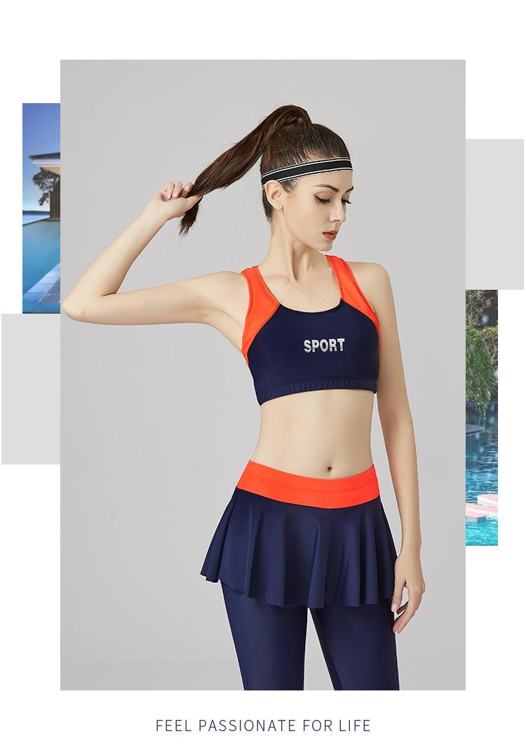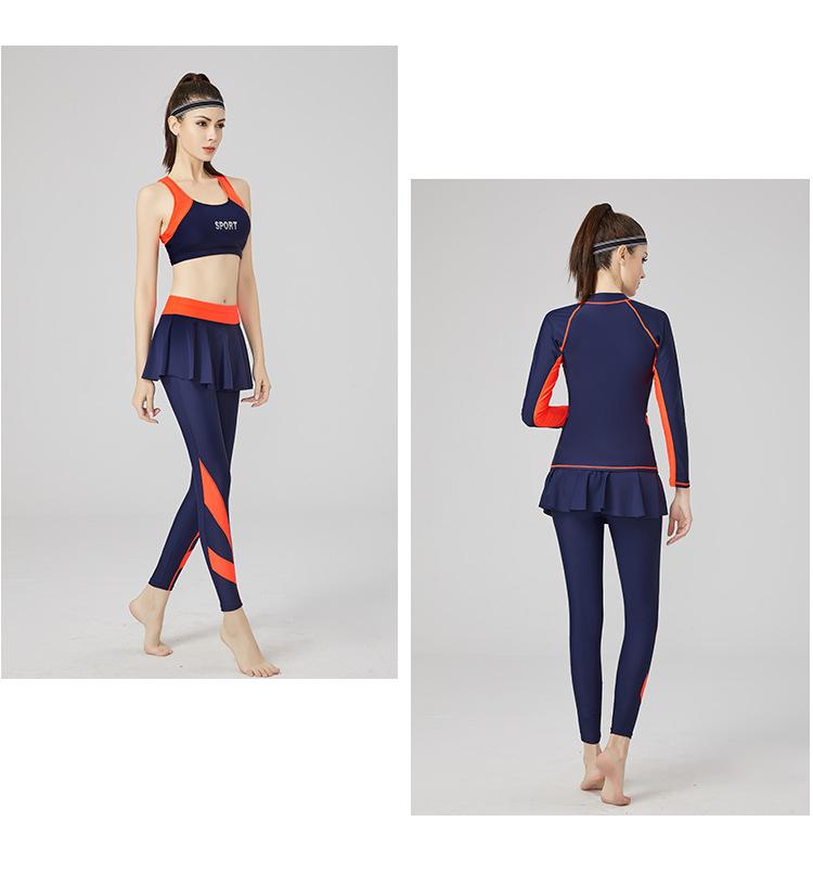 Traje de Baño al por Mayor Ropa Exterior de Manga Larga Sujetador Pantalones Largos Falda Conjunto de Tres Piezas Traje de Baño Separado Talla Grande Conservador y Cubridor del Cuerpo
