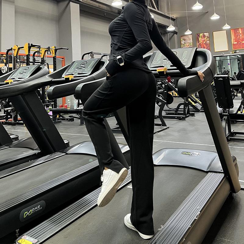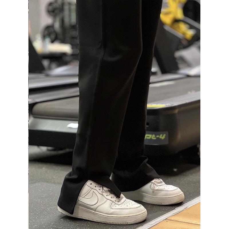 Pantalones de fitness divididos adelgazantes para mujer, rectos de pierna ancha, para entrenamiento, deportivos, de cintura alta, holgados, pantalones de yoga