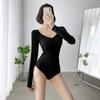 Traje de baño deportivo de una pieza nuevo europeo y americano para mujer, de manga corta, con costuras de color sólido, traje de baño Amazon para mujer para buceo y surf