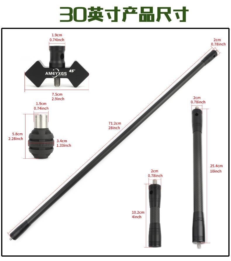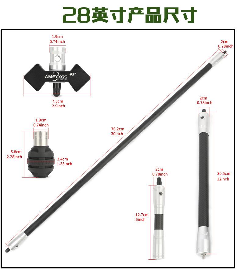 Barra de equilibrio para arco y flecha AMEYXGS, barra de equilibrio para arco recurvo competitivo, adecuada para barra principal de 28/30 pulgadas, barra lateral, barra de extensión