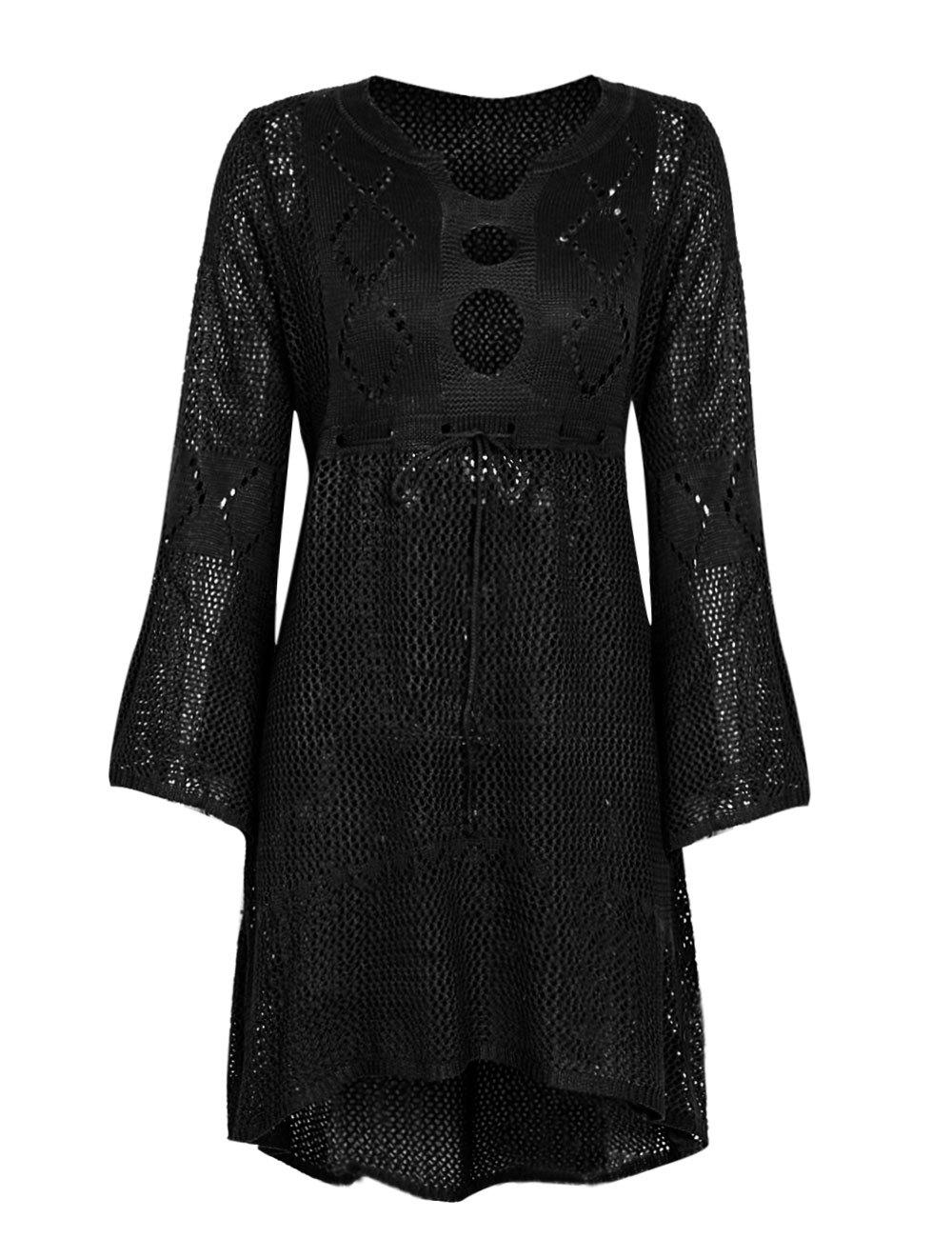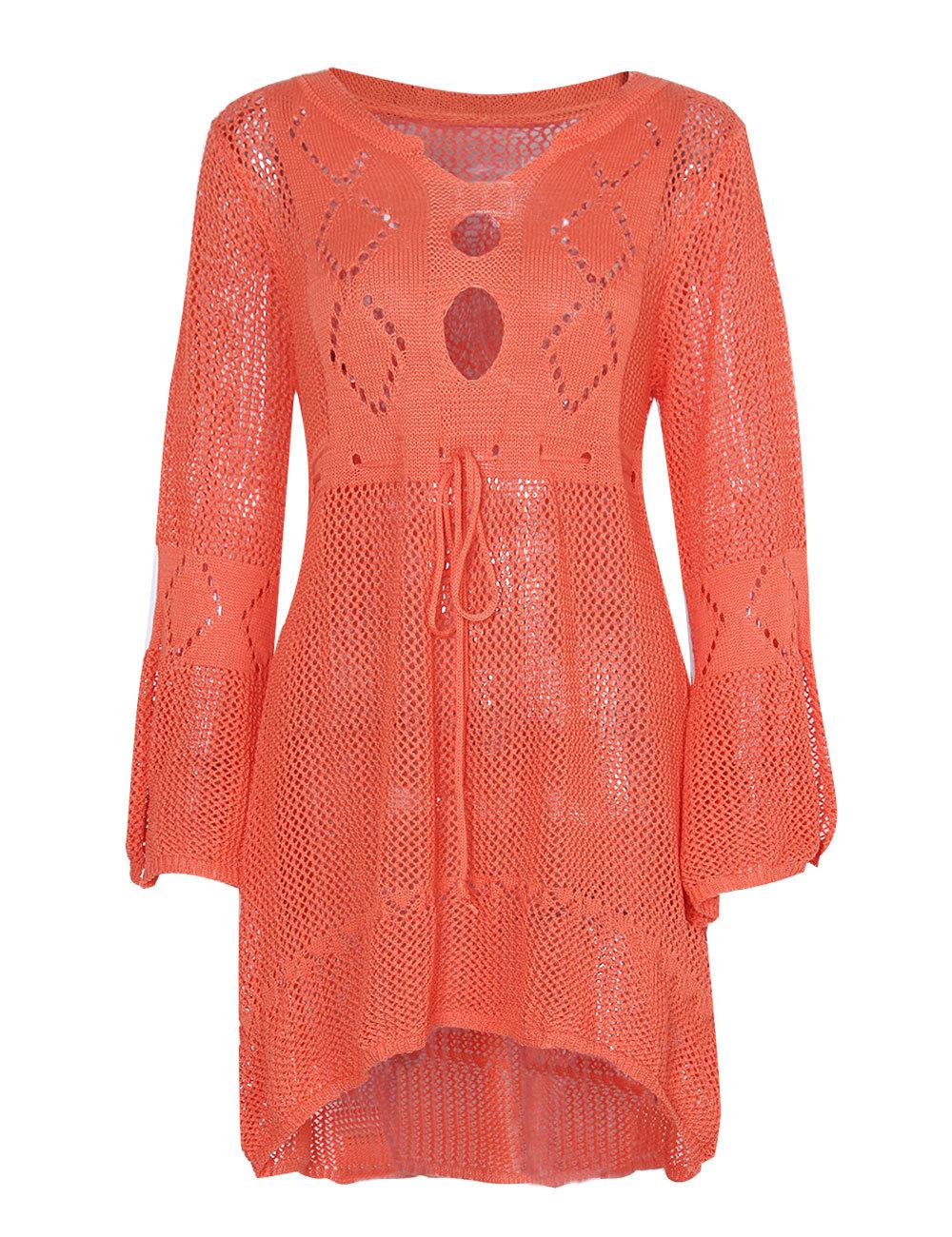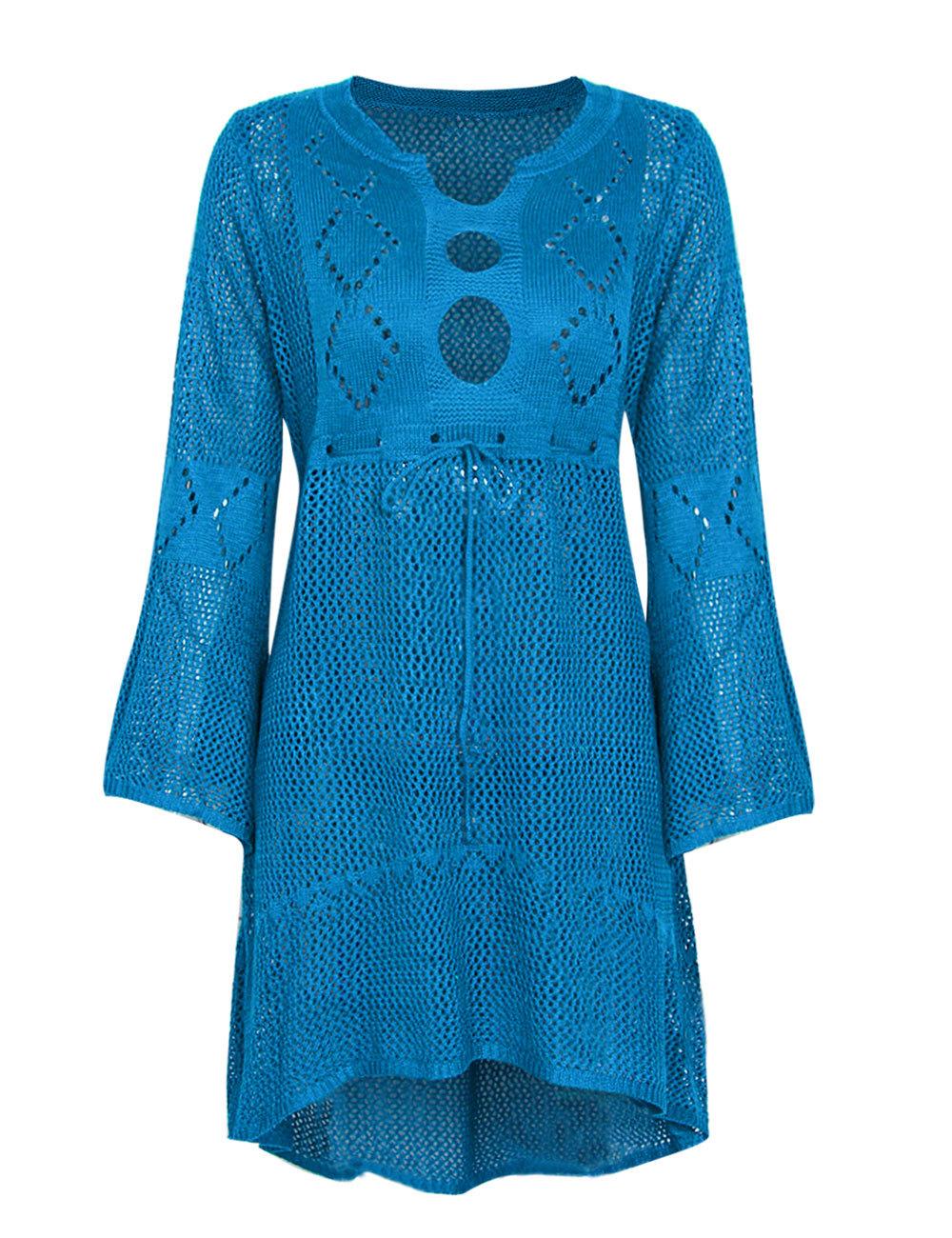 Suéter de vacaciones para cubrir bikini, estilo europeo y americano, falda de malla con hombros descubiertos de punto hueco, falda de playa, camisa de protección solar para mujer