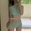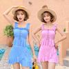 [3 colores] Nuevo traje de baño coreano dividido para mujer, vacaciones en aguas termales, Pure Want, traje de baño de malla con falda plisada en la cadera.