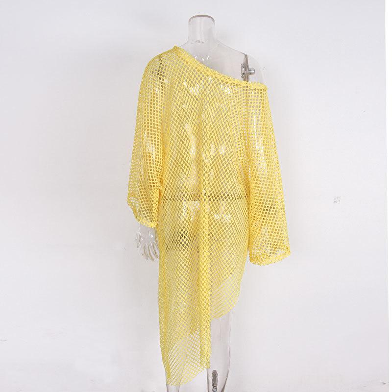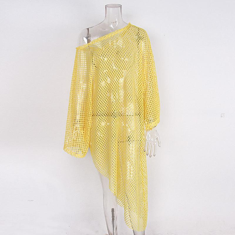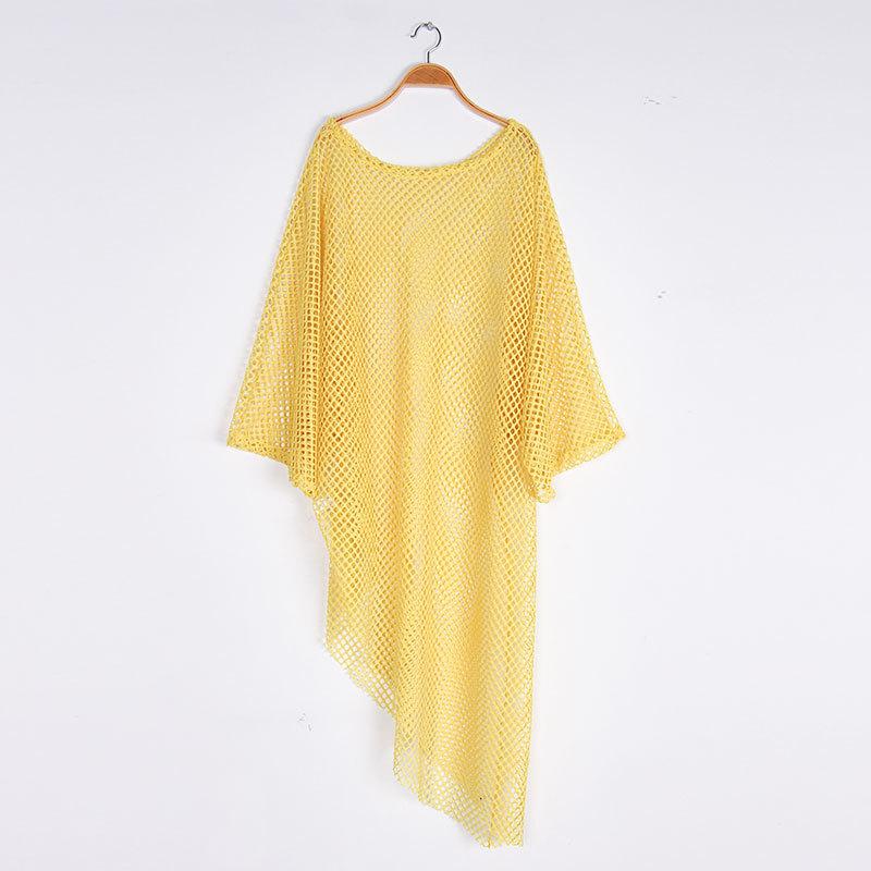 Primavera y verano nuevo Amazon bikini camisa protector solar suelta color sólido hueco vacaciones de playa vestido tejido sin mangas
