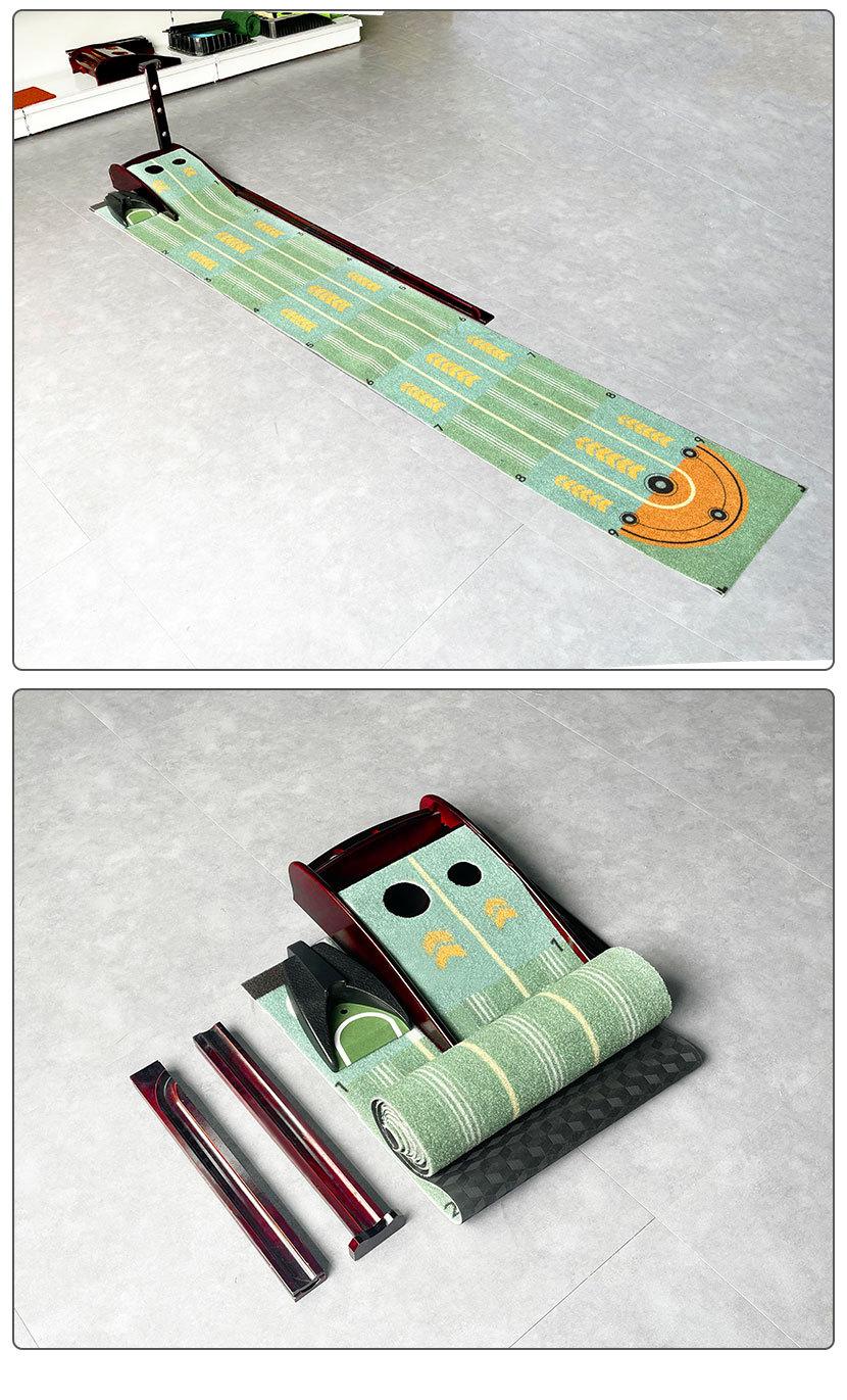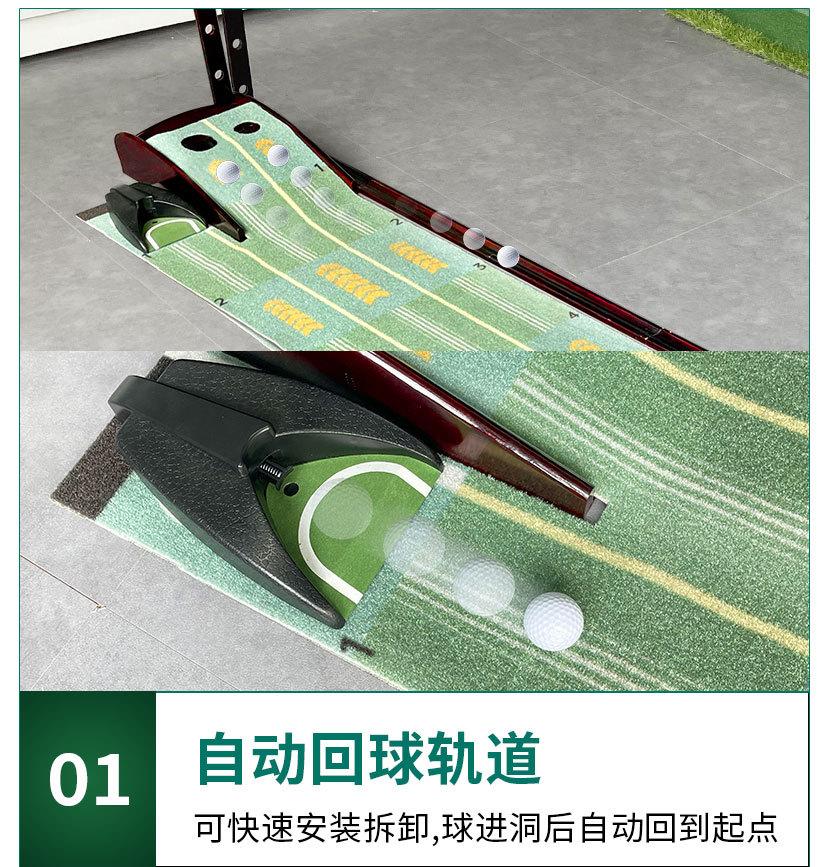 Ejercicio de Putting de Golf Madera Maciza Fairway Interior Electrónico Automático Retorno de Bola Oficina Hogar Manta de Ejercicio de Putting