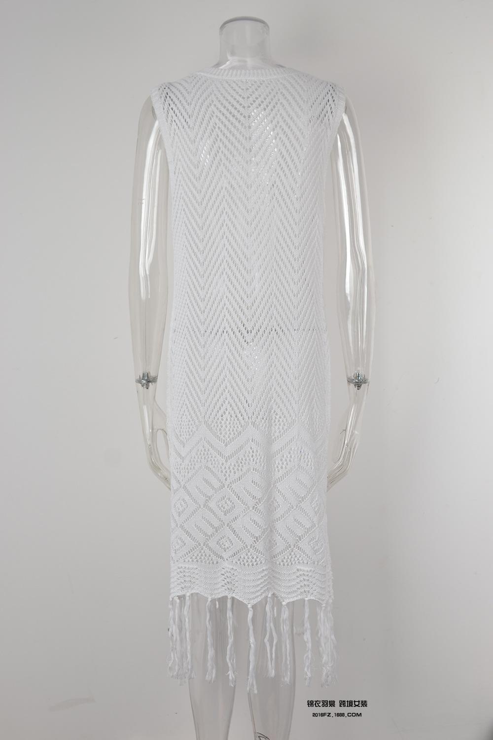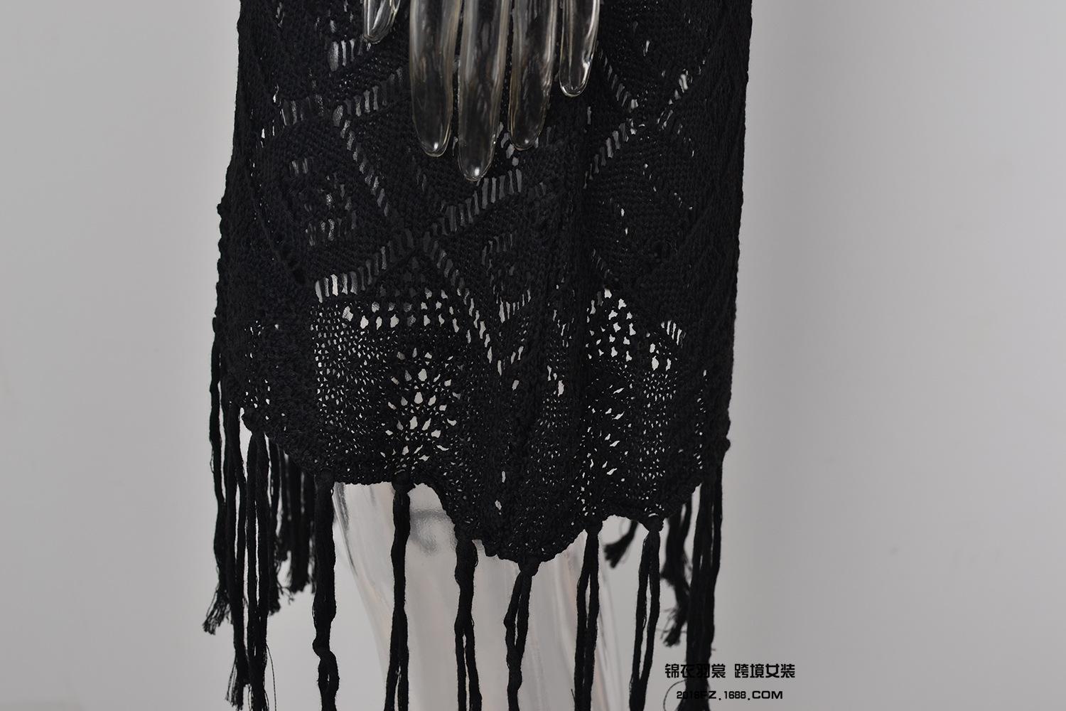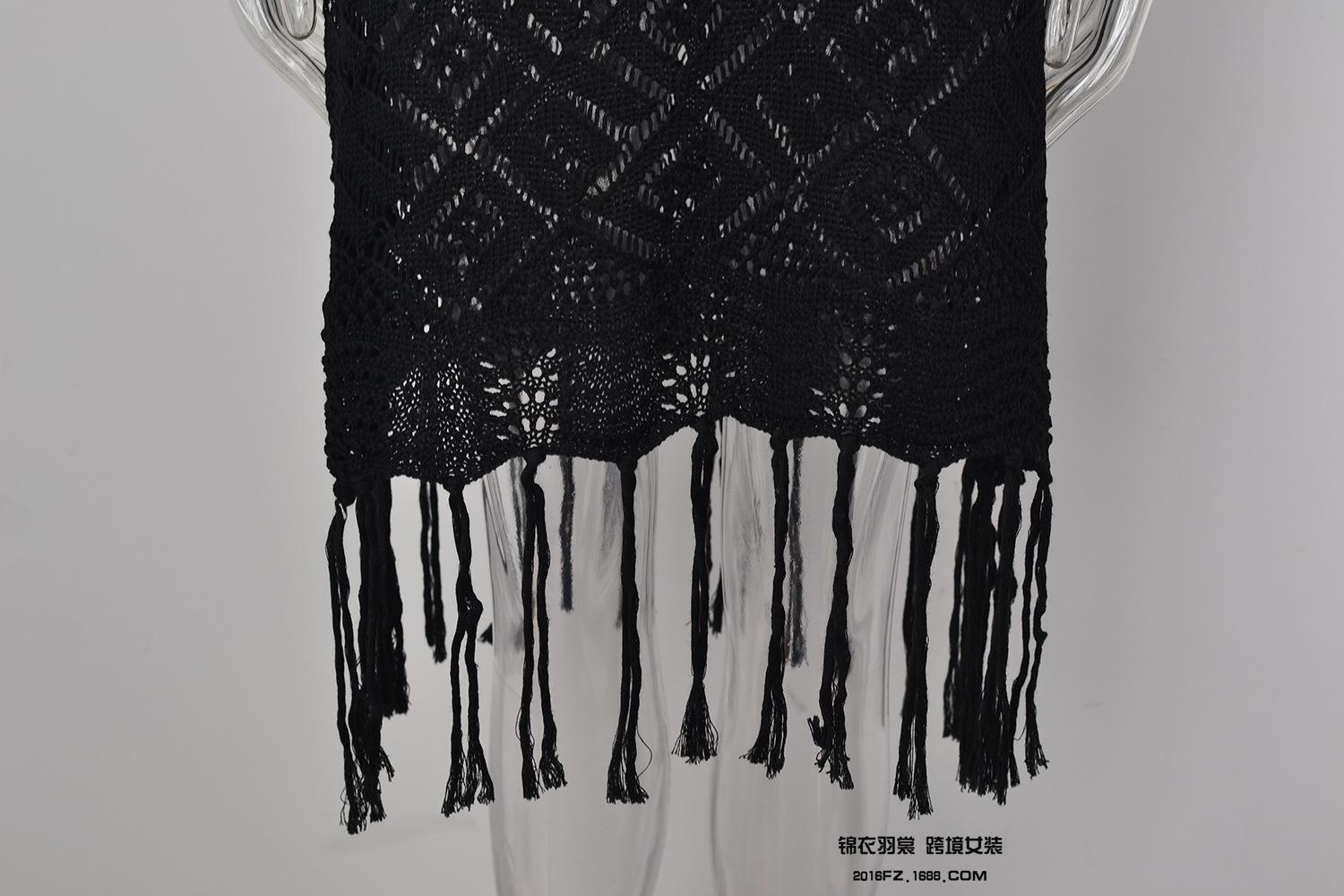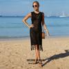 Verano Nuevo Amazon Transfronterizo Cubre Bikini Encaje Calado con Cordones Borla Chaqueta Traje de Baño Falda Larga de Playa para Mujer