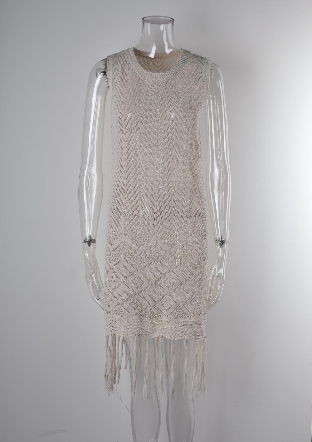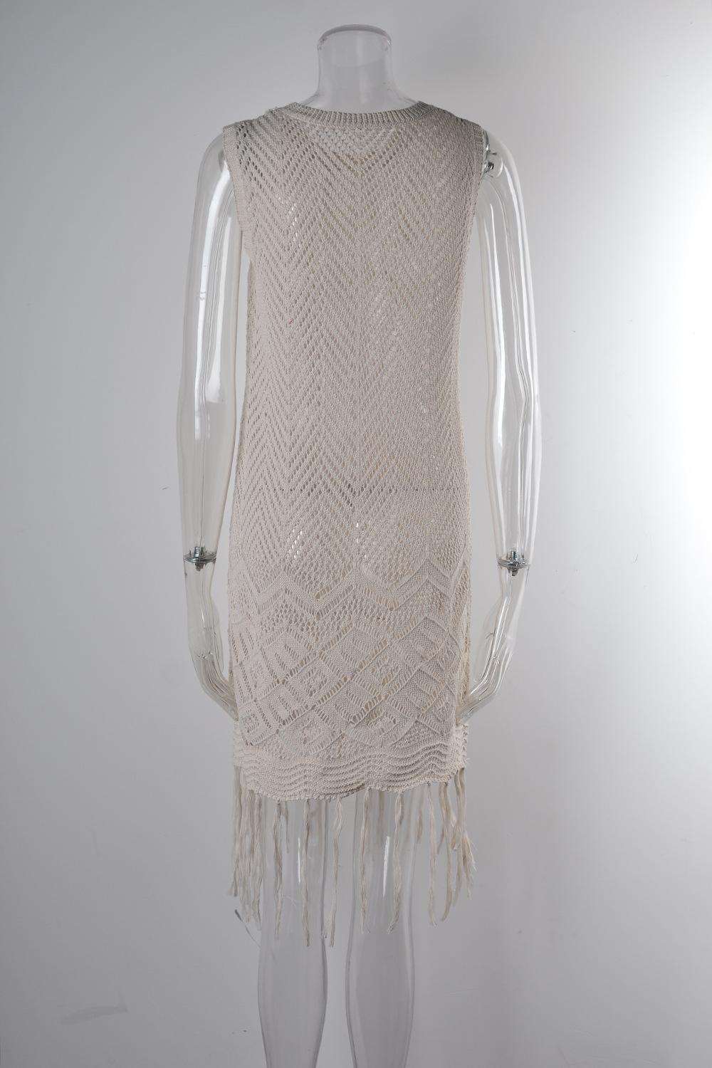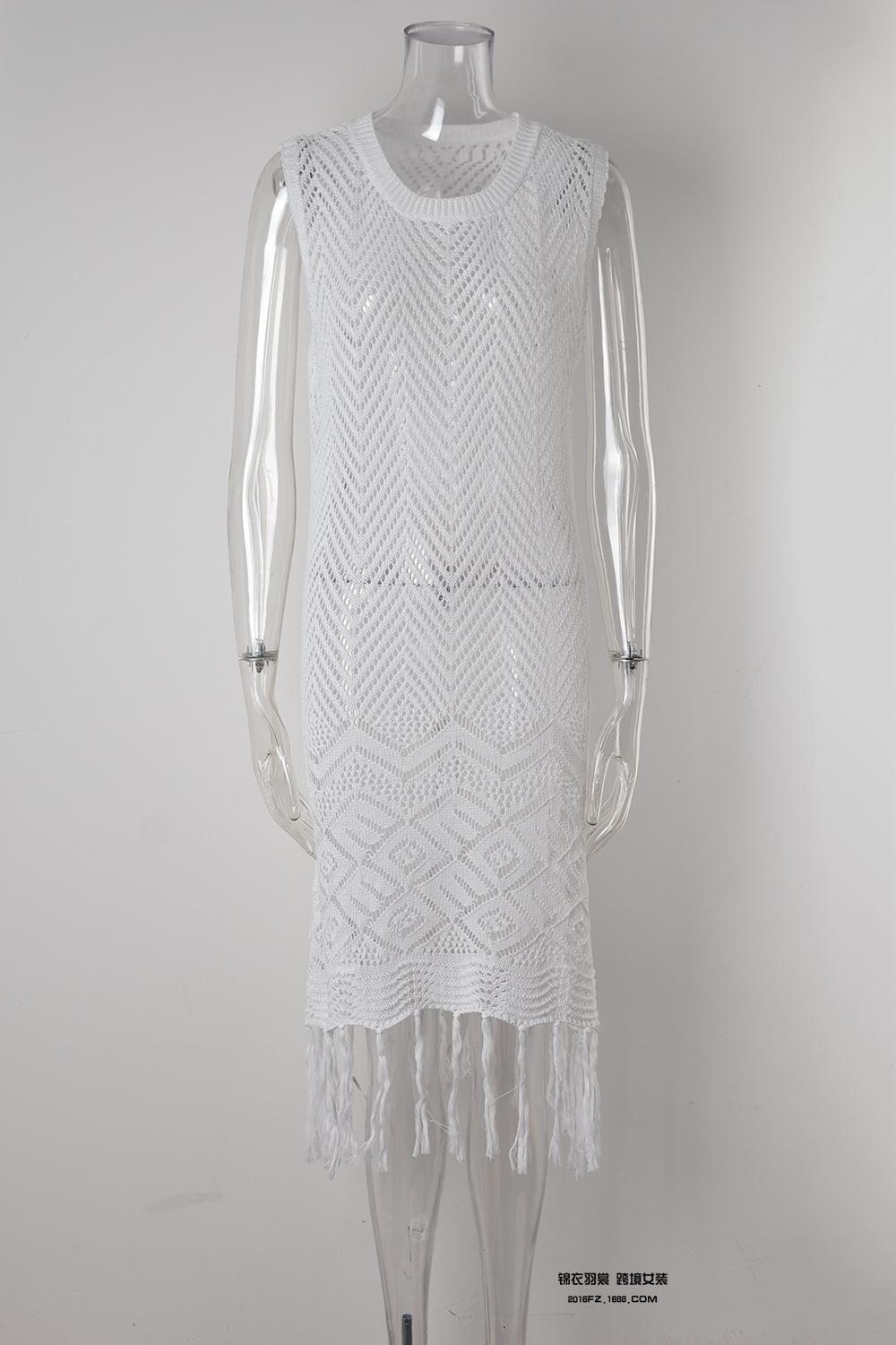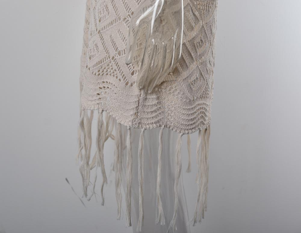 Verano Nuevo Amazon Transfronterizo Cubre Bikini Encaje Calado con Cordones Borla Chaqueta Traje de Baño Falda Larga de Playa para Mujer