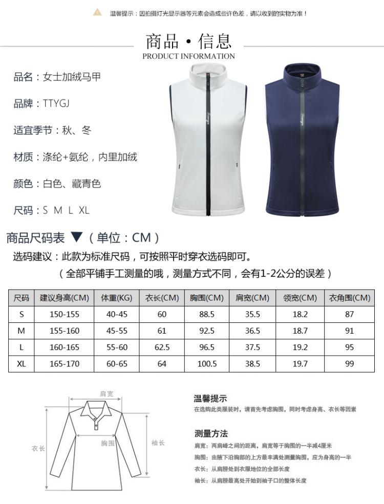 Nueva Versión Terciopelo Ropa de Golf Tygj Chaleco para Mujer Otoño e Invierno Chaleco Cálido Chaqueta Cortavientos