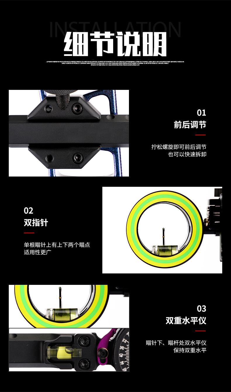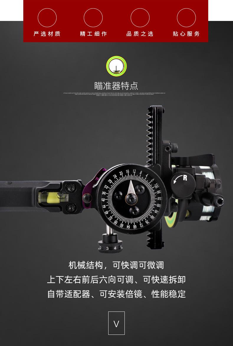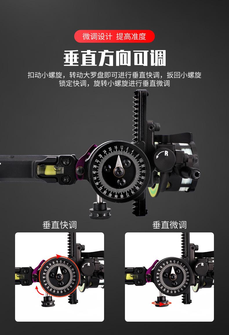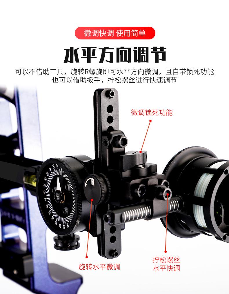 Mira de arco y flecha con polea compuesta. La mira Tommy se puede ajustar con precisión y se puede equipar con una nueva mira Daddy con espejo doble transfronterizo.