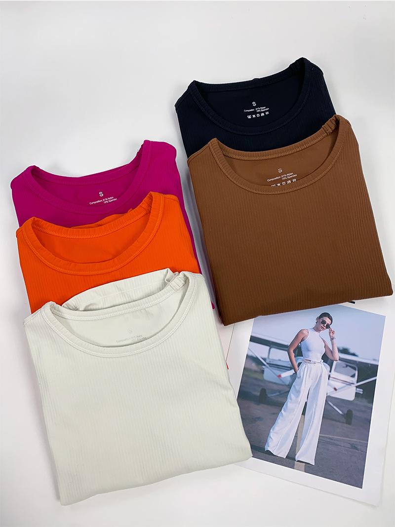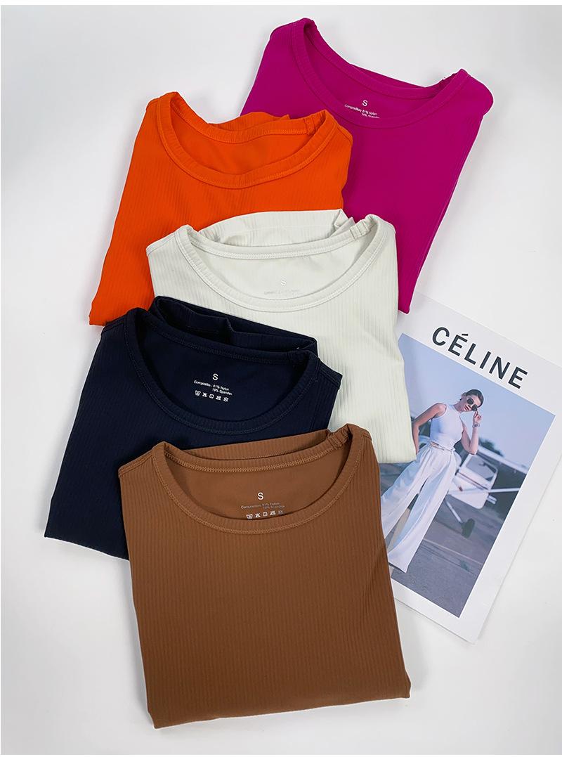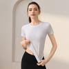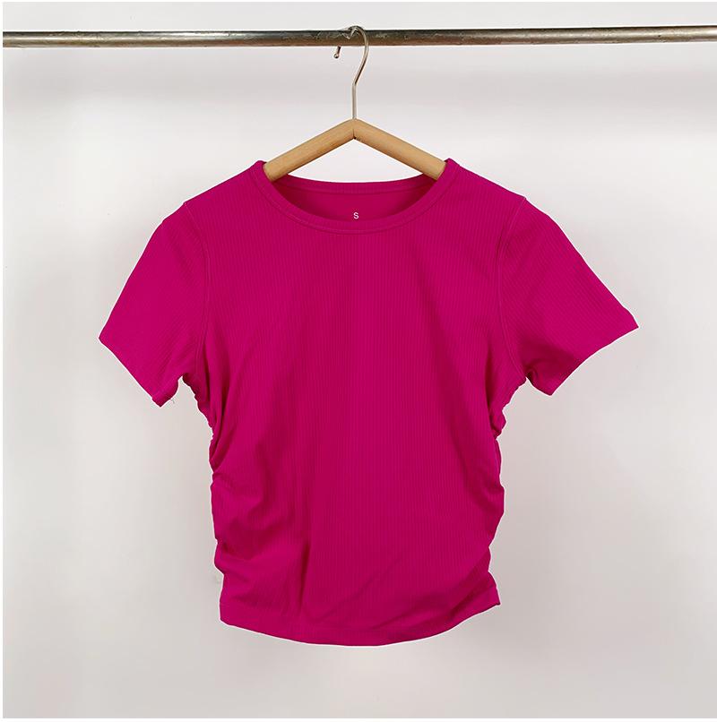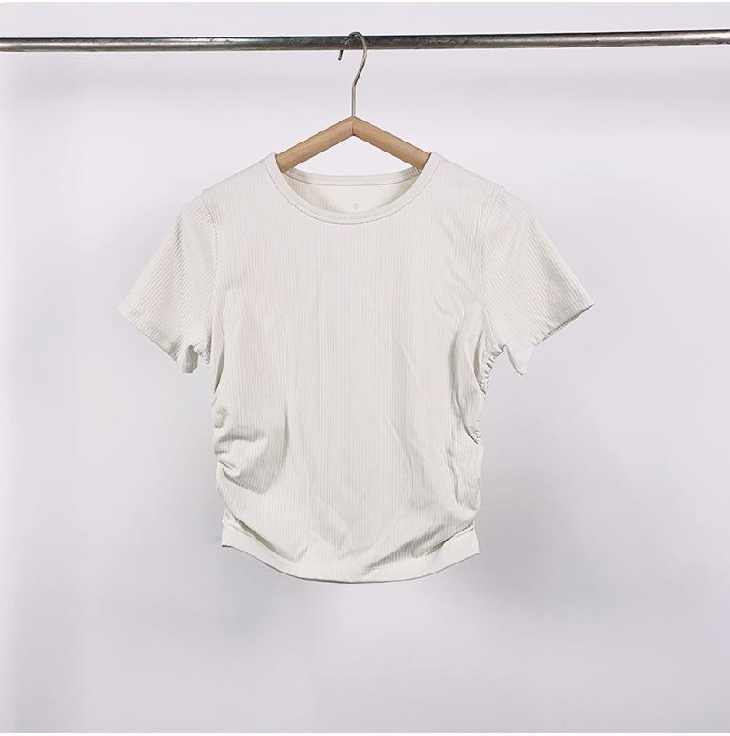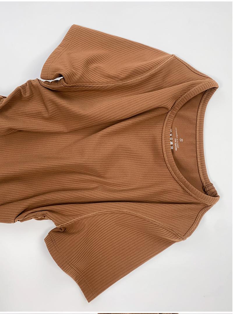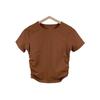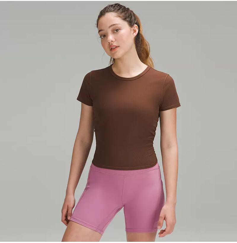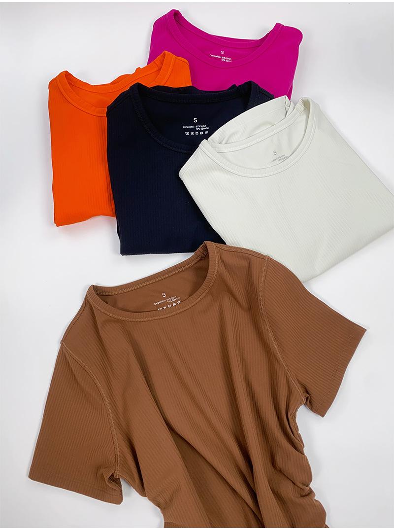 Ropa de Yoga para Mujer Camiseta de Manga Corta con Cuello Redondo Tejido Acanalado Ajustada Ropa de Fitness Top Deportivo Ropa de Entrenamiento de Pilates Ajustada