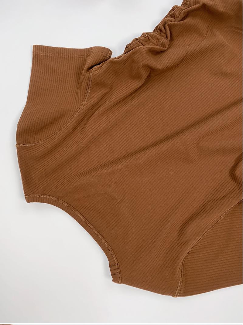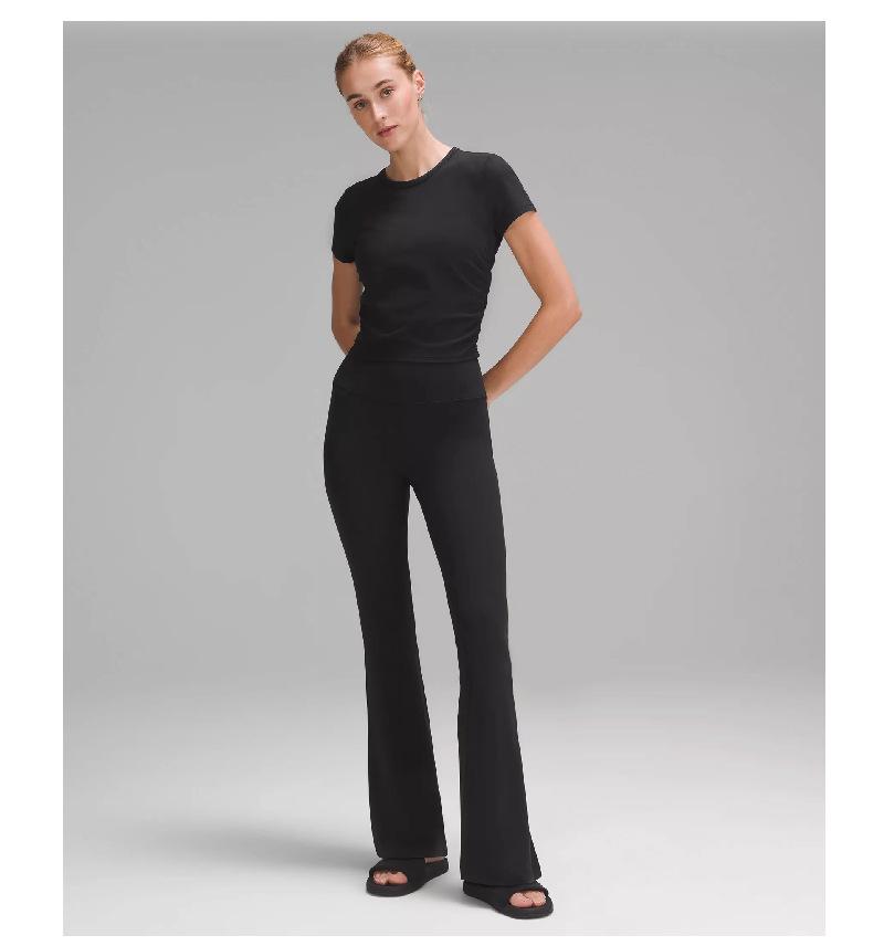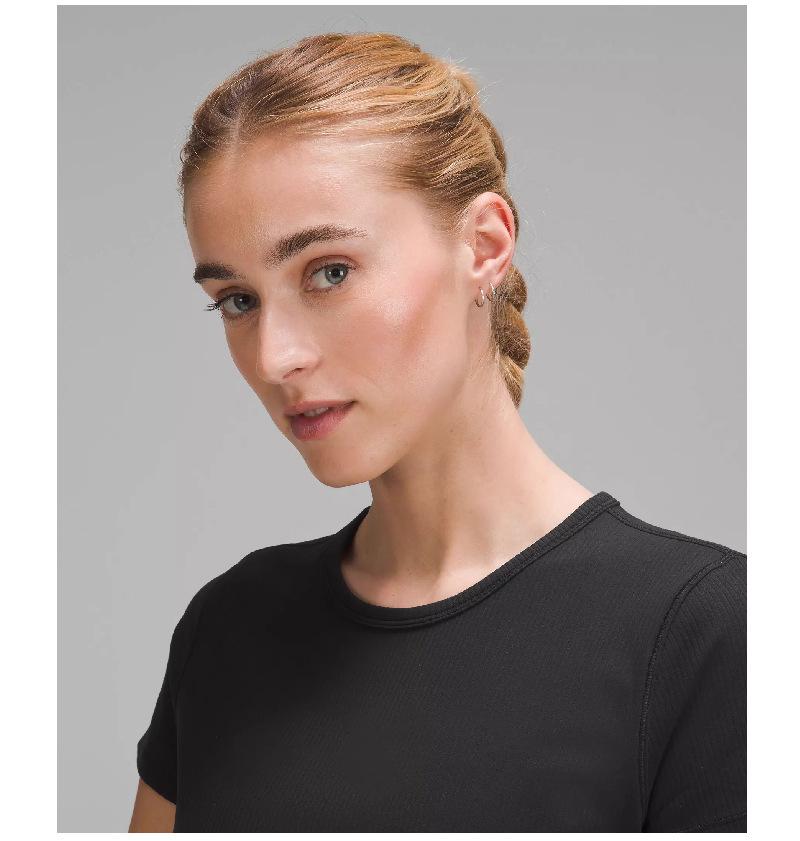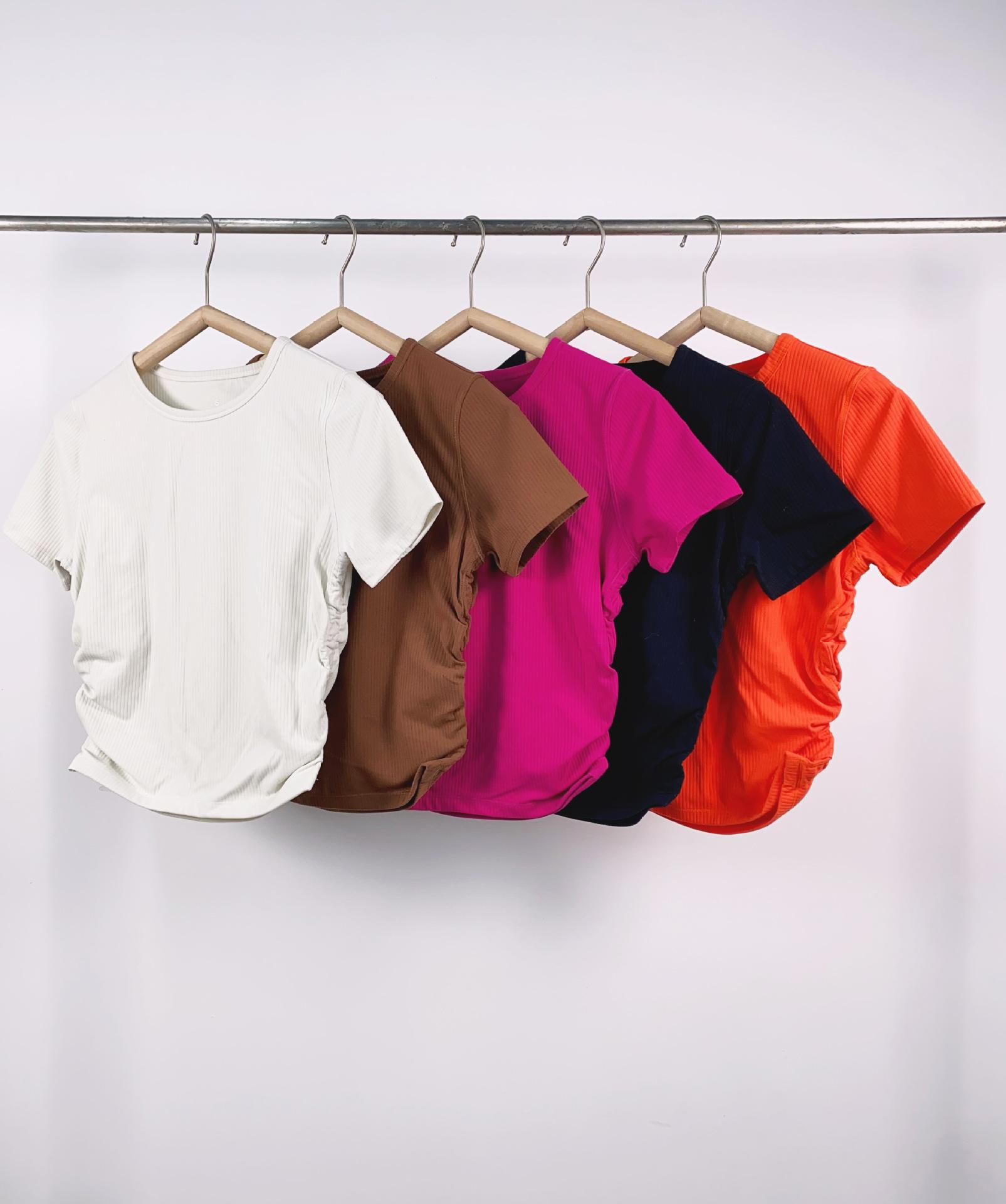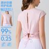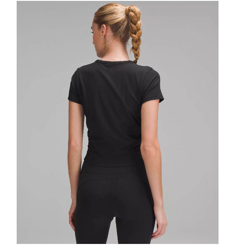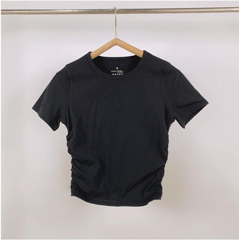 Ropa de Yoga para Mujer Camiseta de Manga Corta con Cuello Redondo Tejido Acanalado Ajustada Ropa de Fitness Top Deportivo Ropa de Entrenamiento de Pilates Ajustada