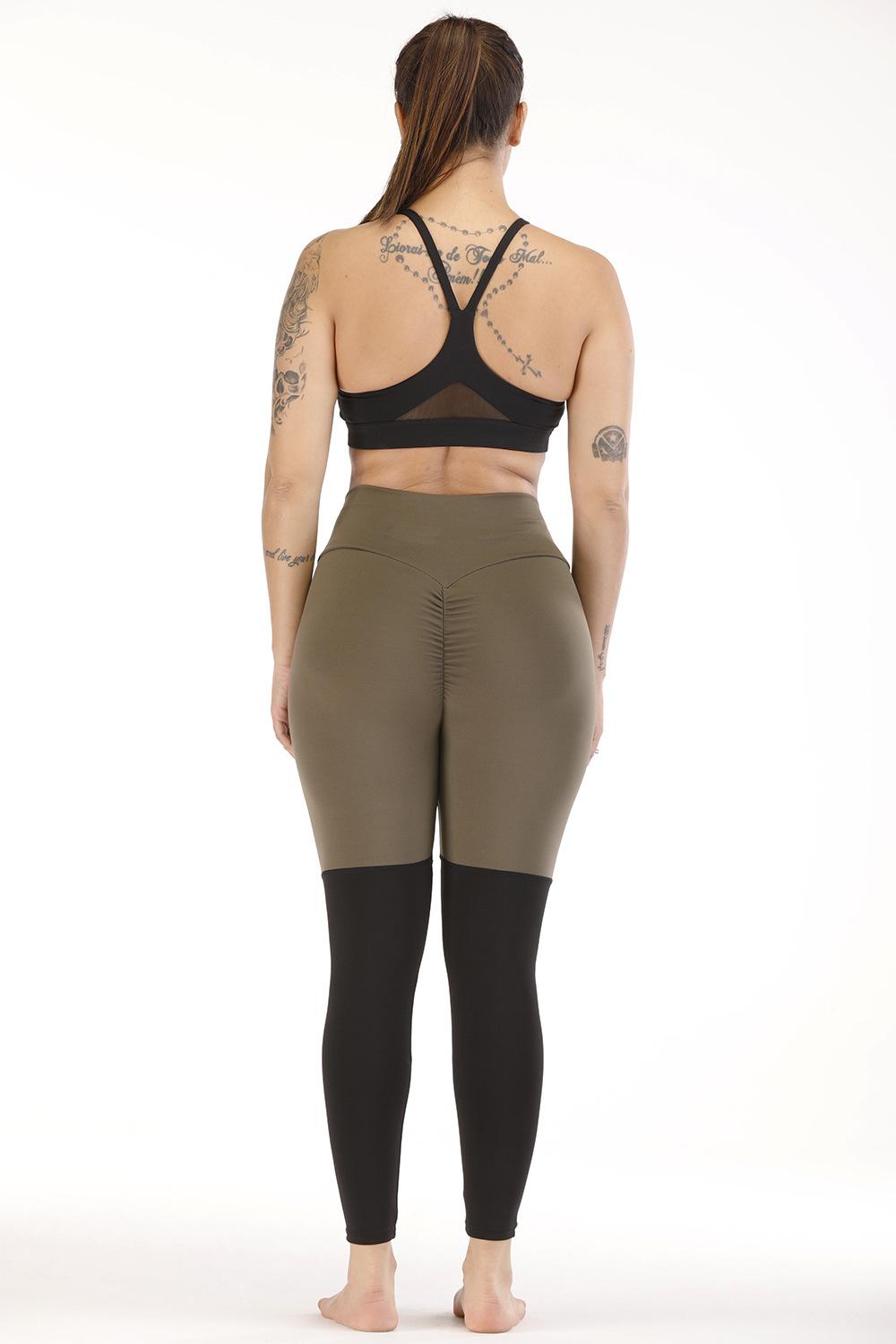Pantalones de yoga de cintura alta con realce de cadera, estilo europeo y americano, sexys, con costuras en color melocotón, para mujer