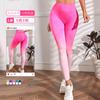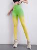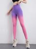 Pantalones deportivos ajustados de cintura alta sin costuras para mujer, de estilo europeo y americano, con efecto lifting de cadera, de secado rápido, con degradado de color caramelo en color melocotón.