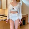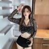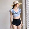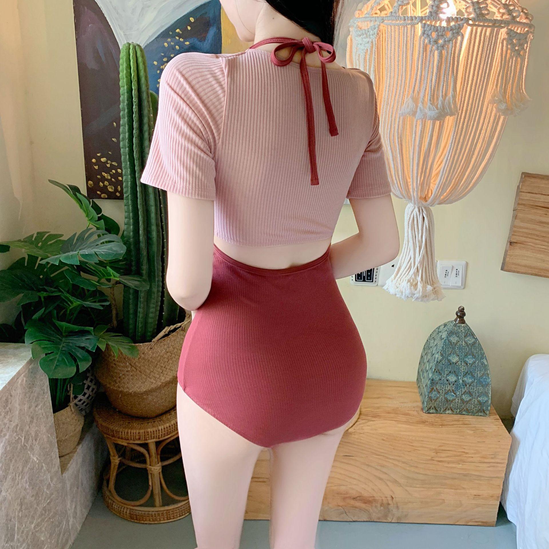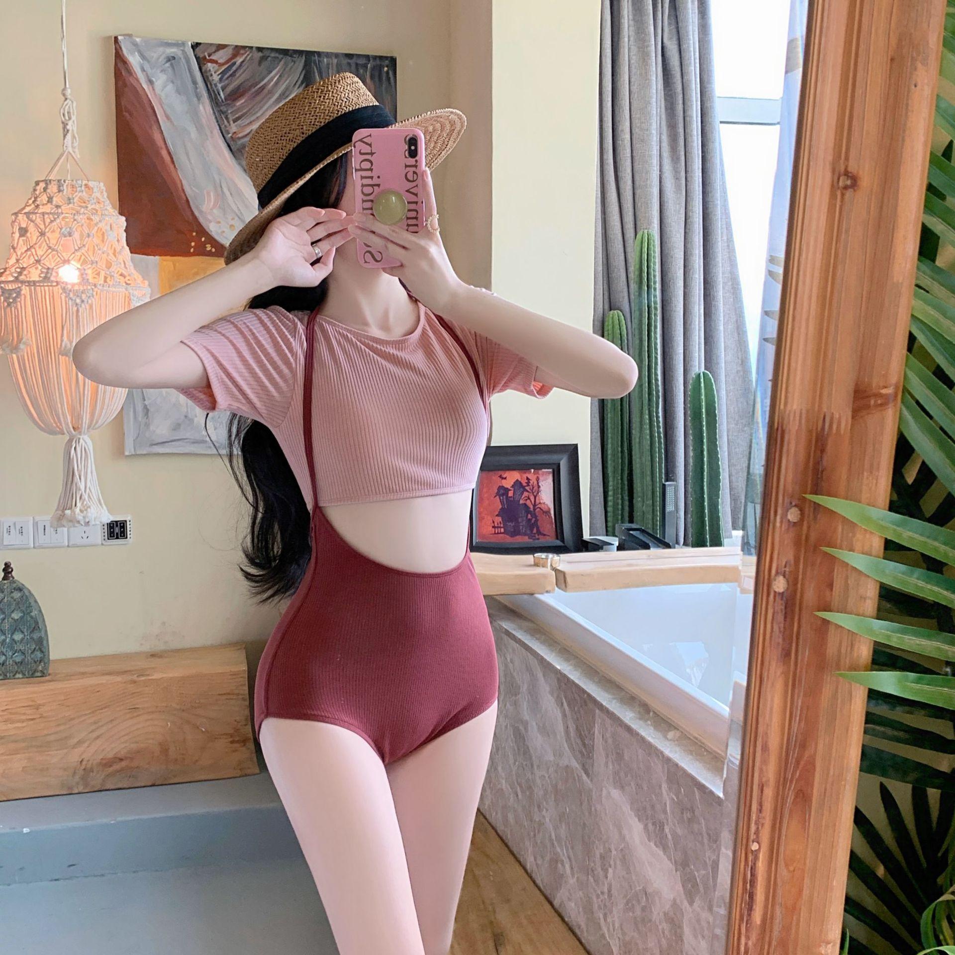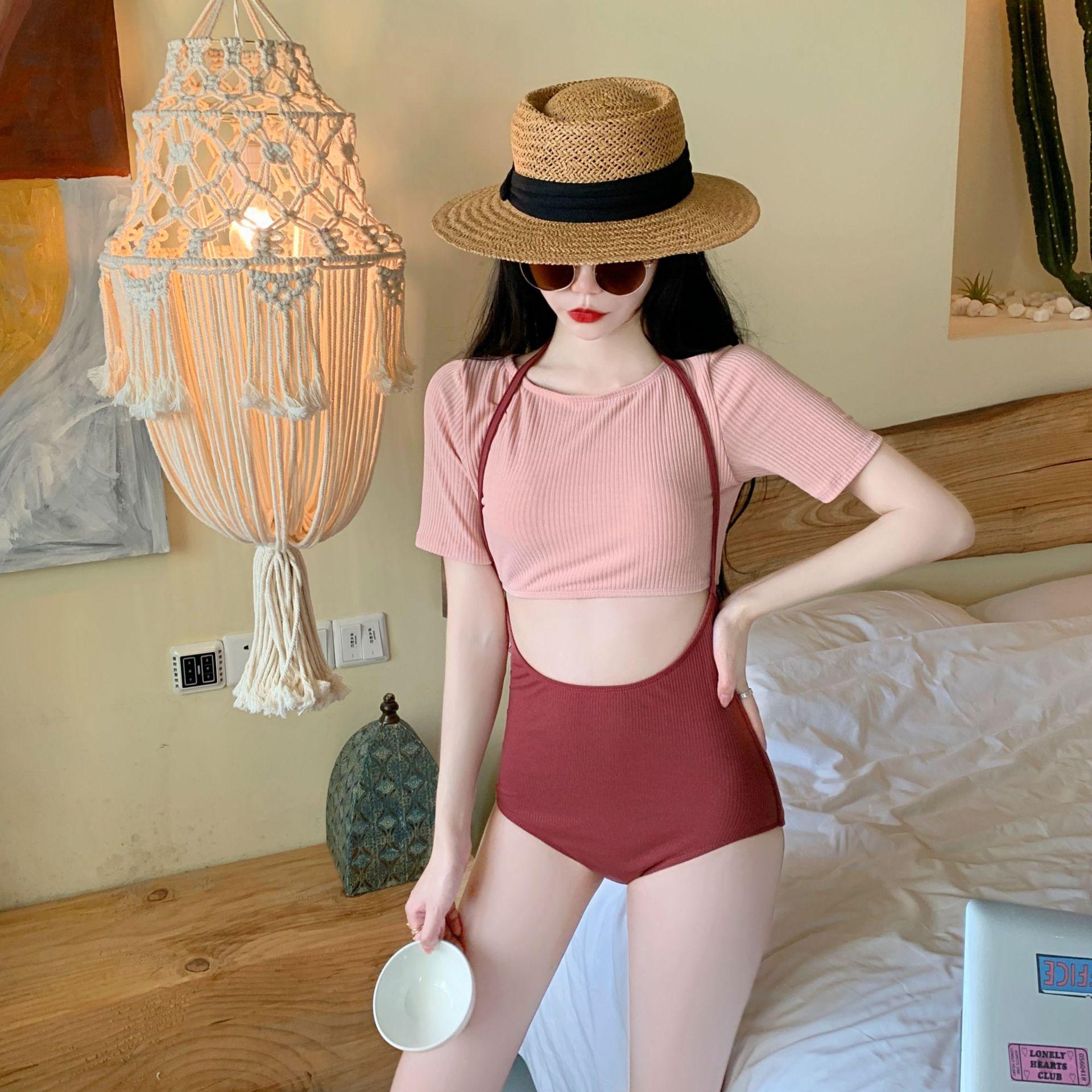 Traje de baño nuevo de fábrica para mujer, moda, combinación de colores, manga media, conservador, adelgazante, cintura alta, aguas termales, estudiante fresca