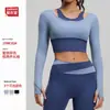 Ropa de Yoga Transfronteriza Sin Sujetador, Top Deportivo de Bloques de Color Color Piel que Parece Dos Piezas, Top Deportivo de Manga Larga Ajustado para Correr para Mujer