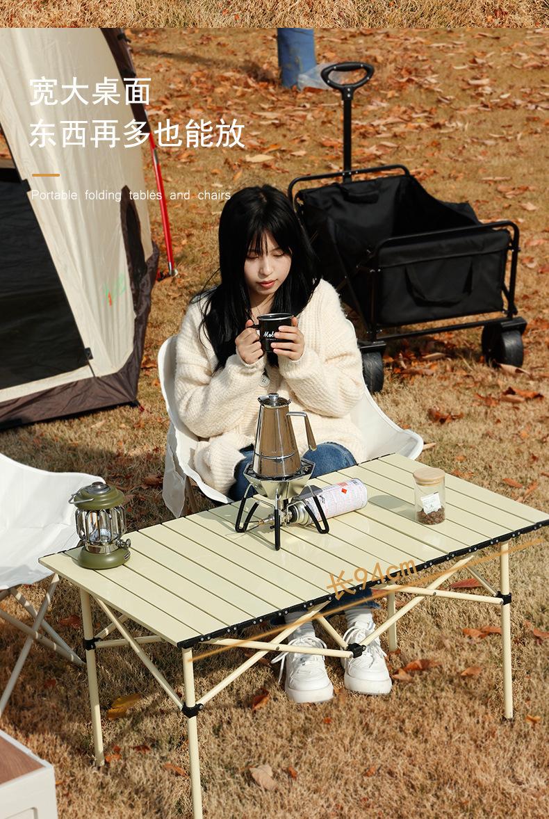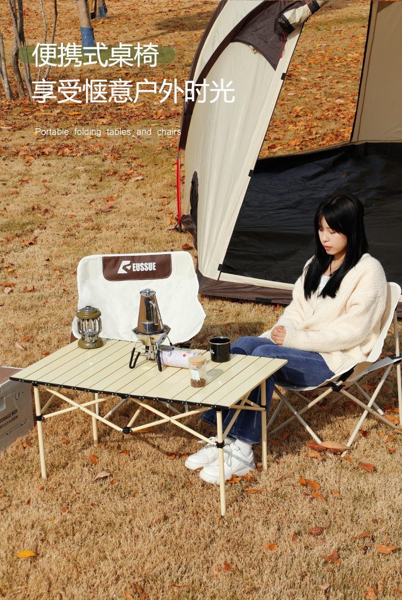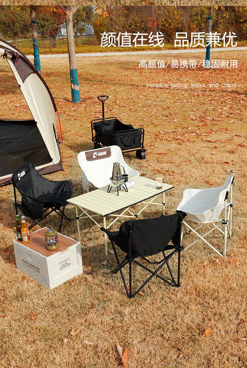 Mesa y silla plegables para acampar al aire libre, portátiles, de aleación de aluminio, tipo rollo de huevo, ligeras, para acampar y sillas, tipo luna.