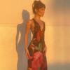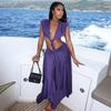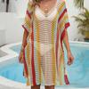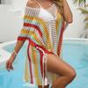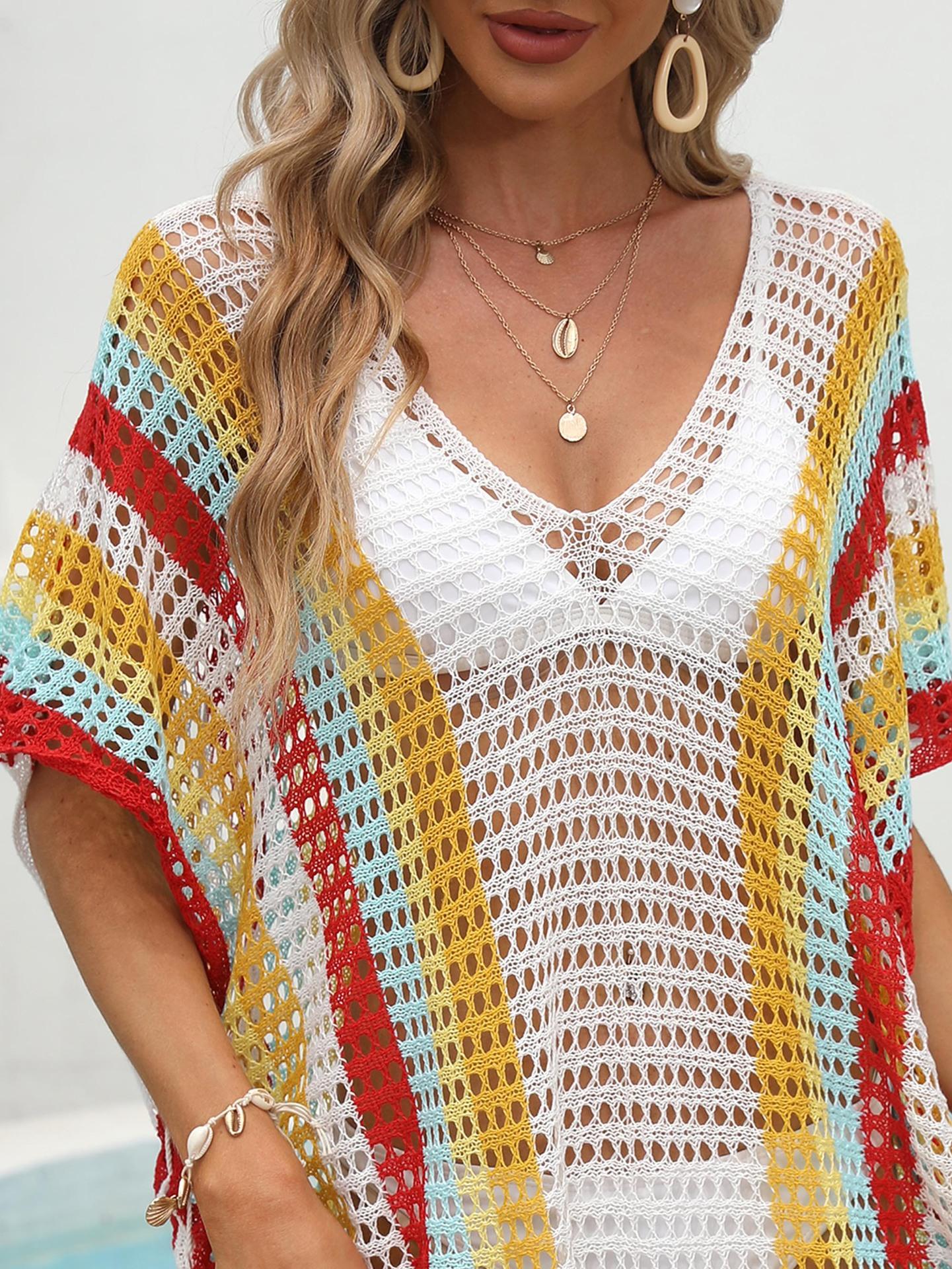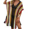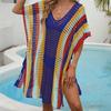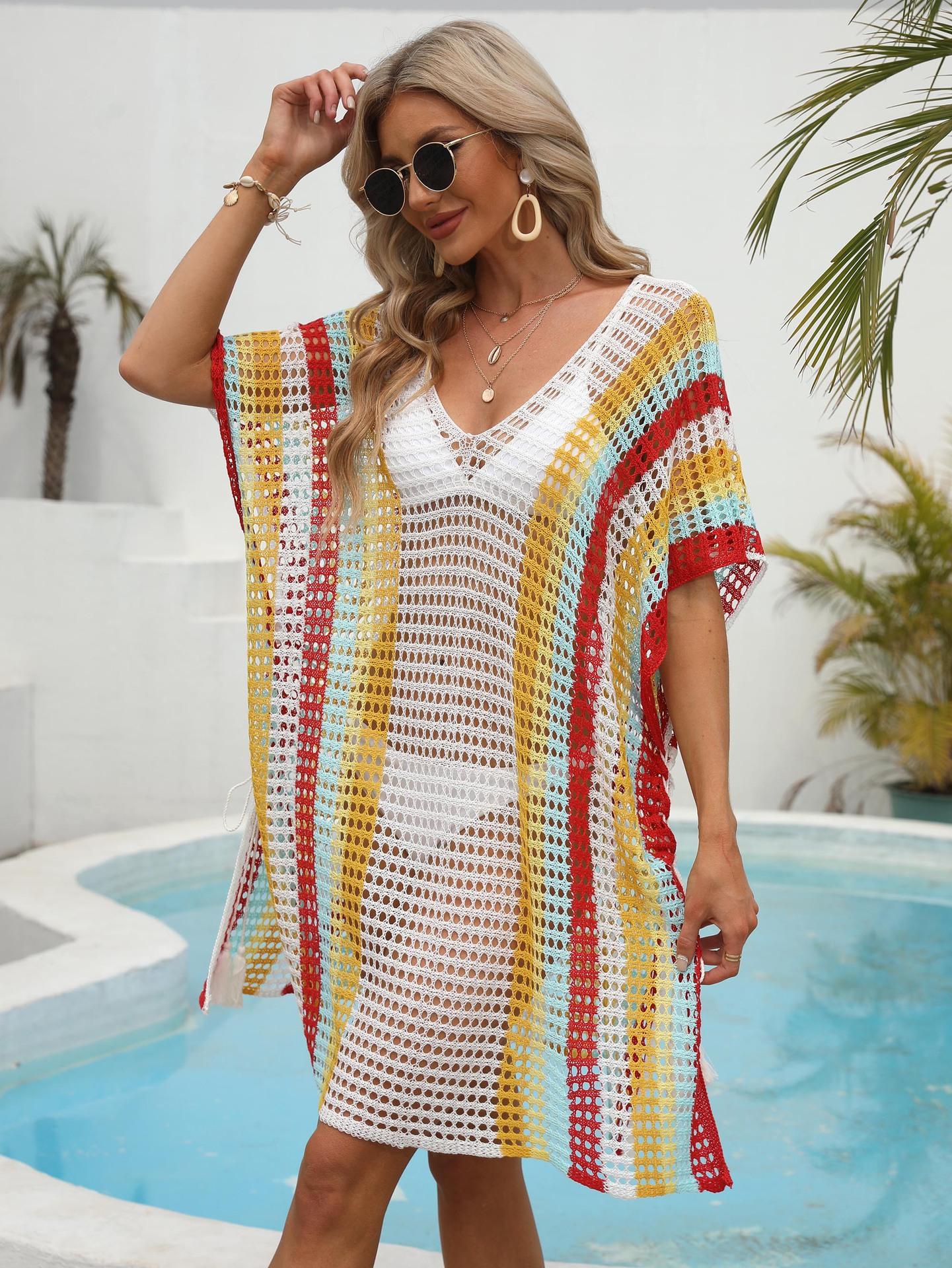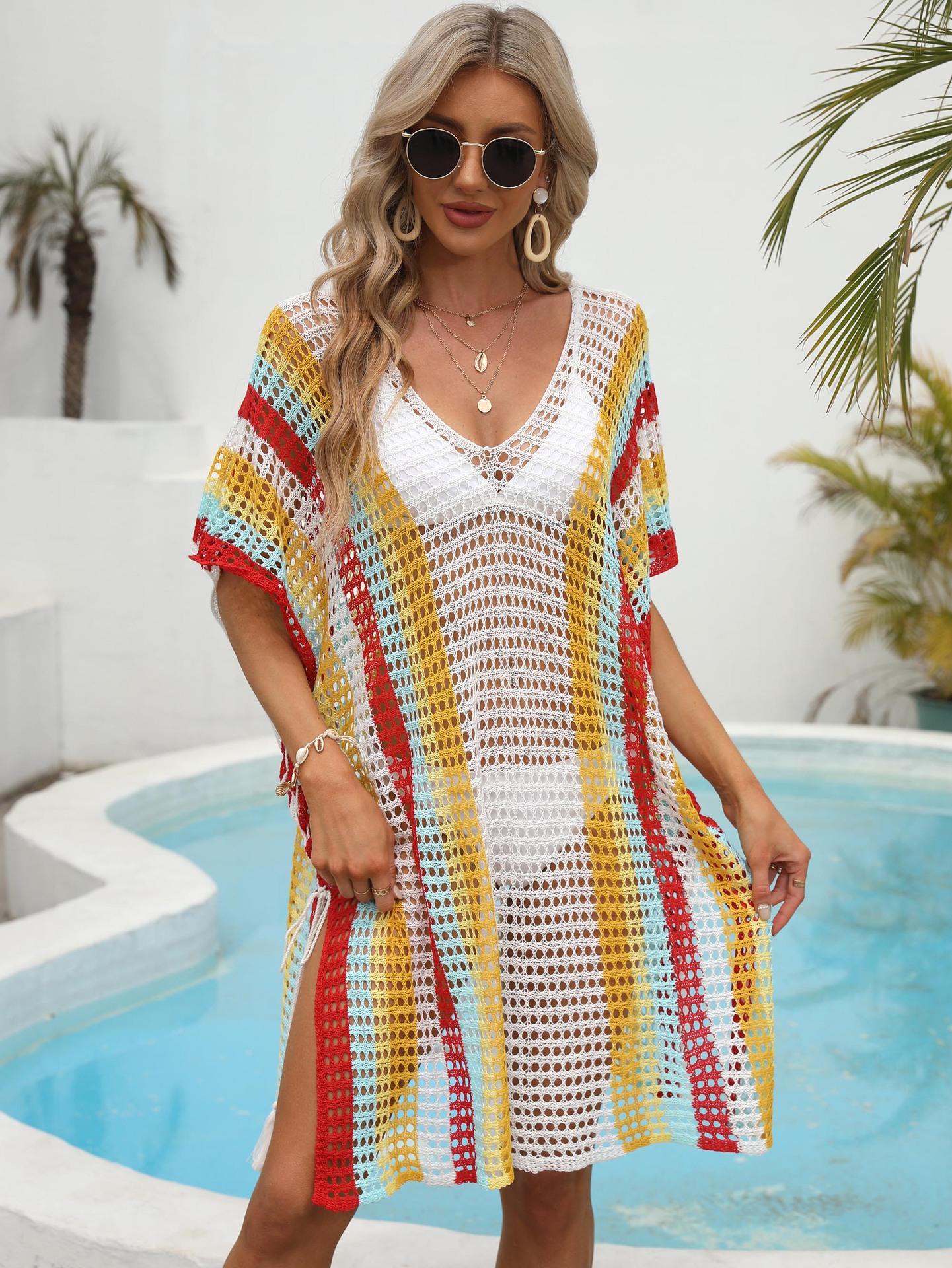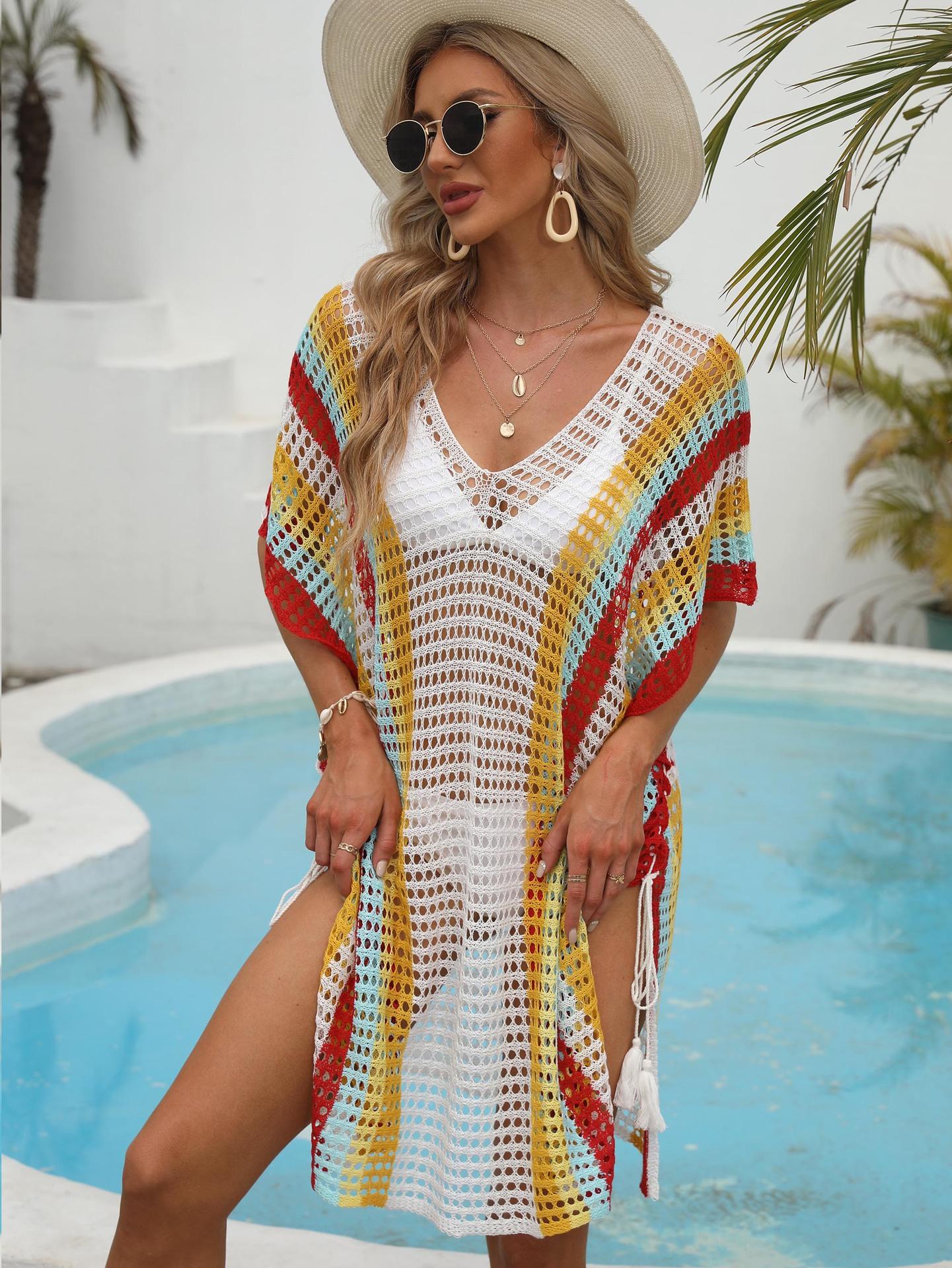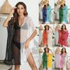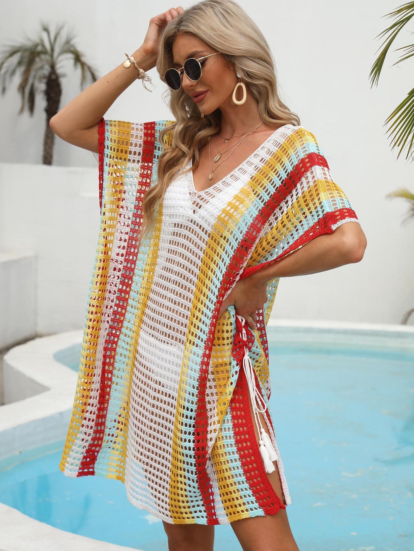 Ropa de Mujer Europea y Americana Transfronteriza Costuras en Color de Contraste Tejido Calado Vacaciones de Playa Bikini Blusa Vestido con Cordones 847
